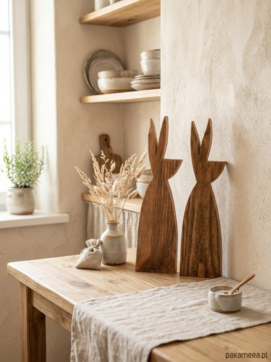 Zestaw Wielkanocny Zając Drewniane Ozdoby w Stylu Rustykalnym