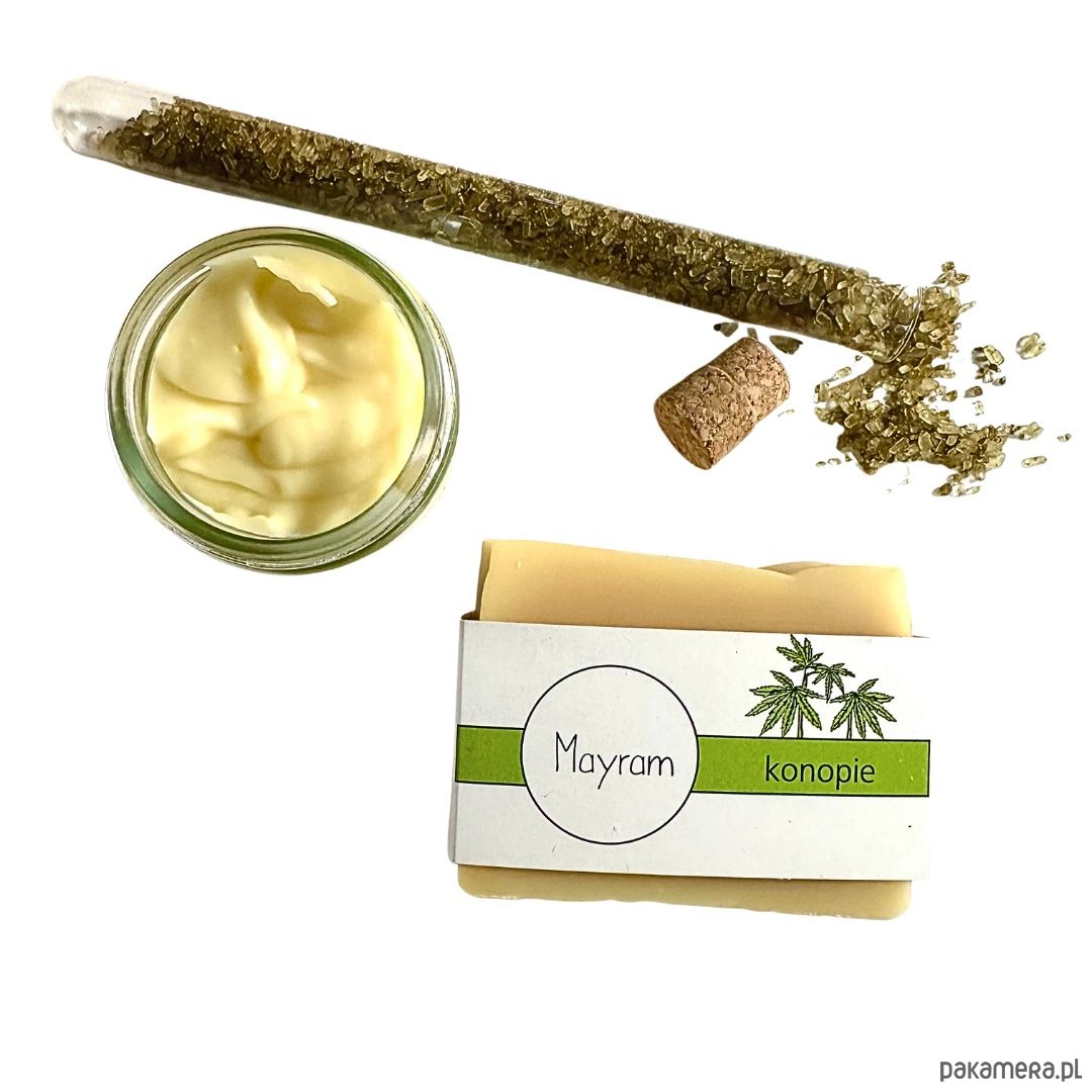 * Mydło Konopie 100g. Mydło w 20% składa się z oleju konopnego. Olej ten ze względu na swój bogaty skład jest bardzo uniwersalny. Chętnie sięgają po niego osoby z problemami skórnymi. Wspomaga leczenie stanów zapalnych.