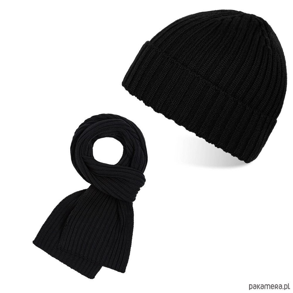 ZESTAW ZIMOWY MĘSKI CZARNY ZZ-07-BL CZAPKA A-06 I SZALIK D-06