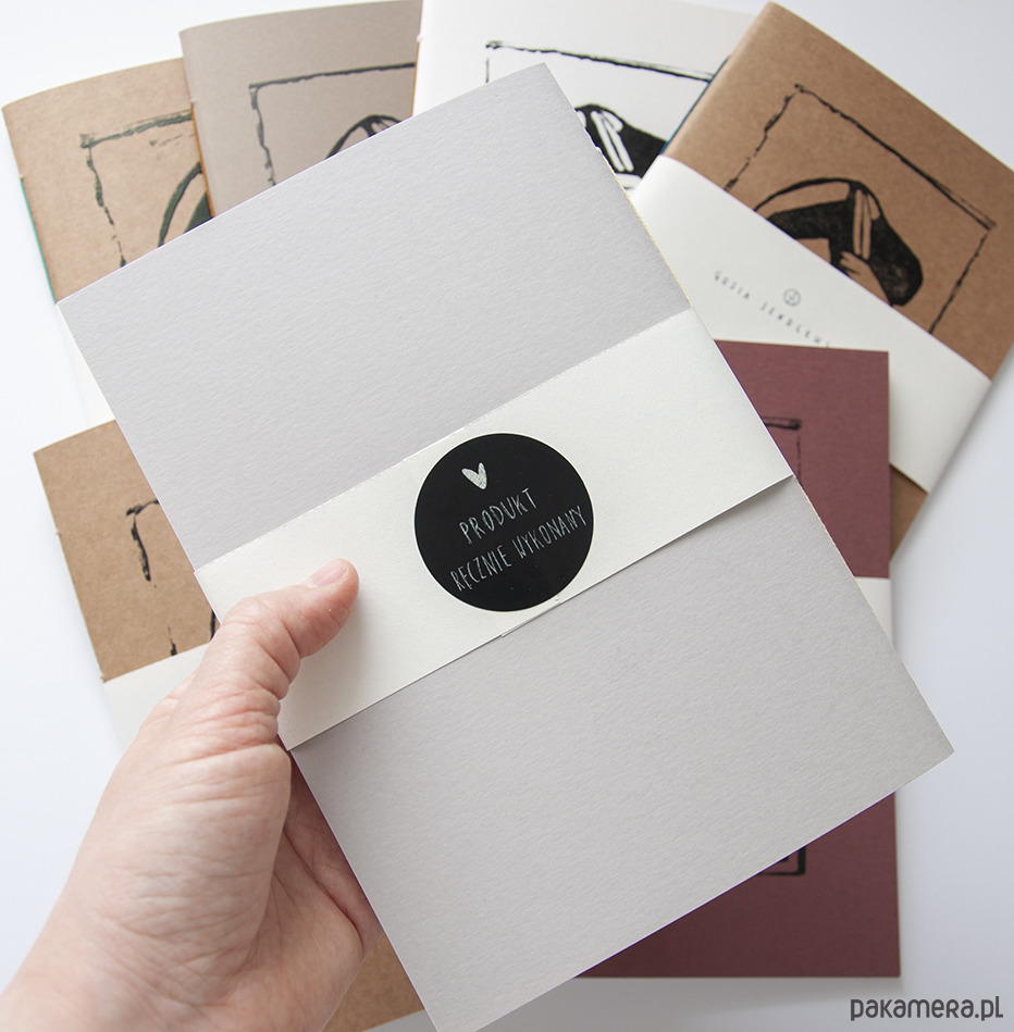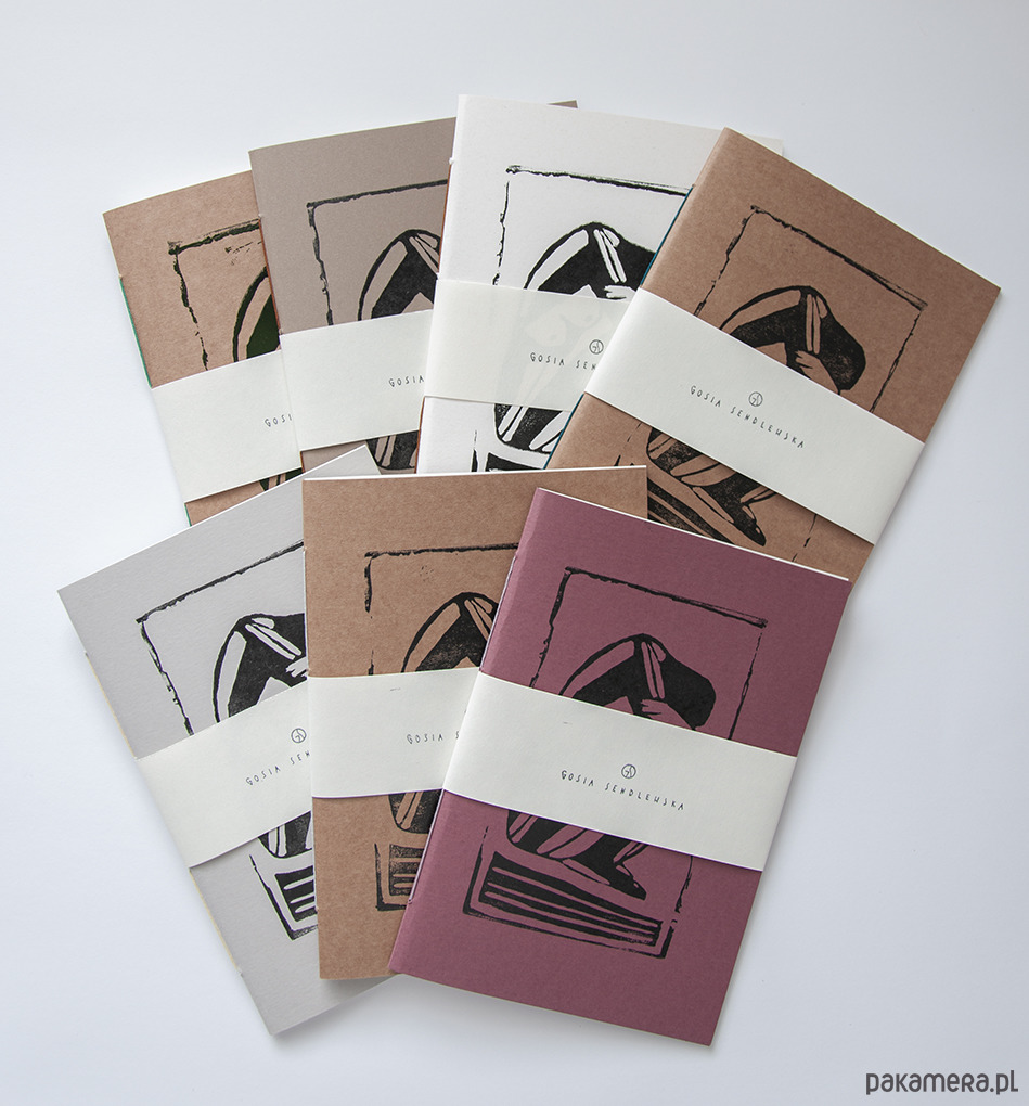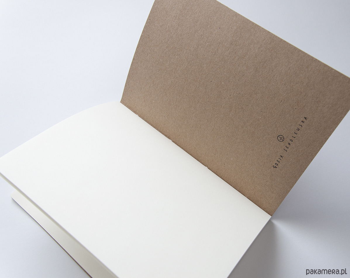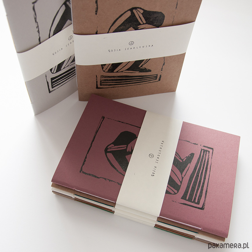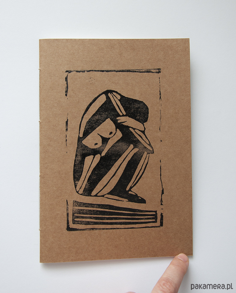 Zeszyt został zaprojektowany i wykonany w 100% ręcznie w Krakowie. Posiada druk ręczny na okładce techniką linorytu oraz autorską grafikę.