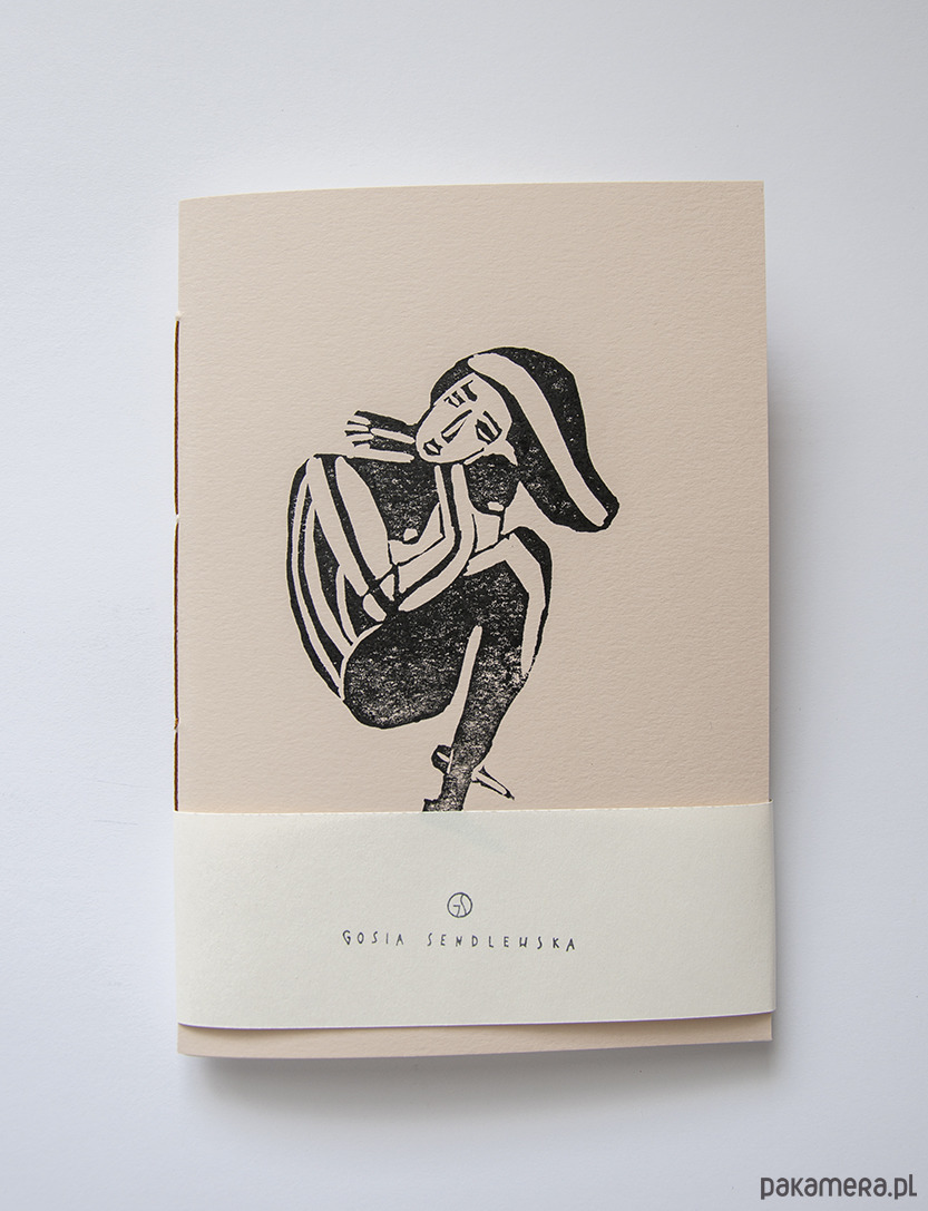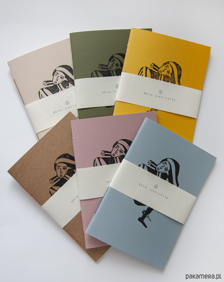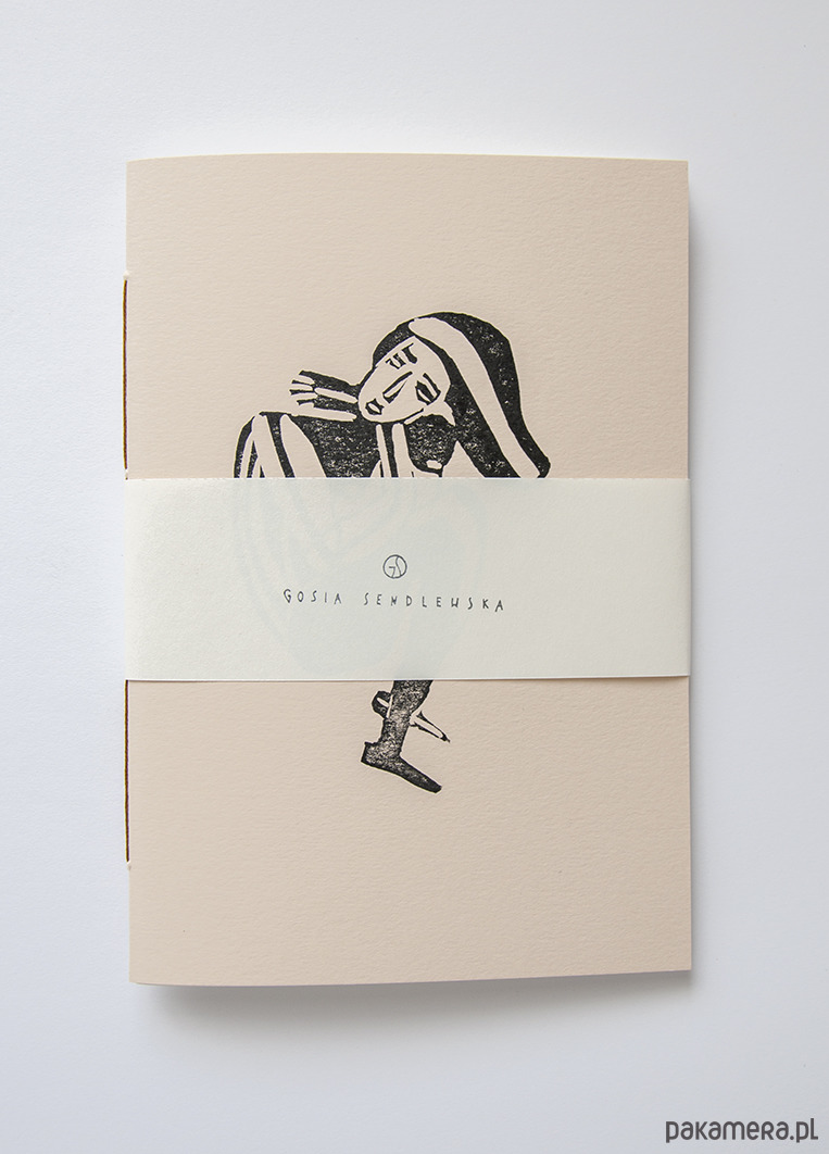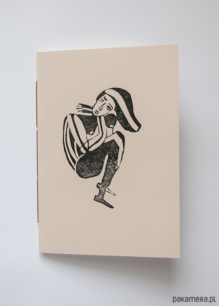 Zeszyt został zaprojektowany i wykonany w 100% ręcznie w Krakowie. Posiada druk ręczny na okładce techniką linorytu oraz autorską grafikę.
