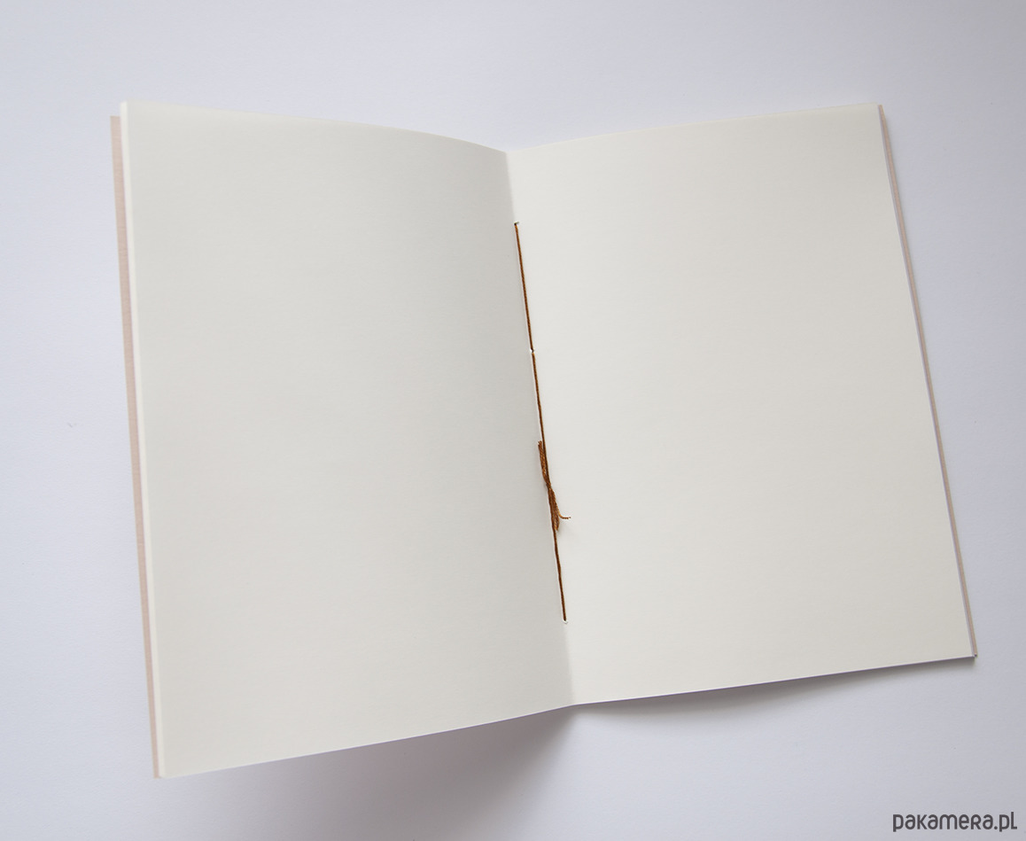 Całość jest ręcznie szyta kolorowymi nićmi. W środku posiada 40 stron gładkiego,