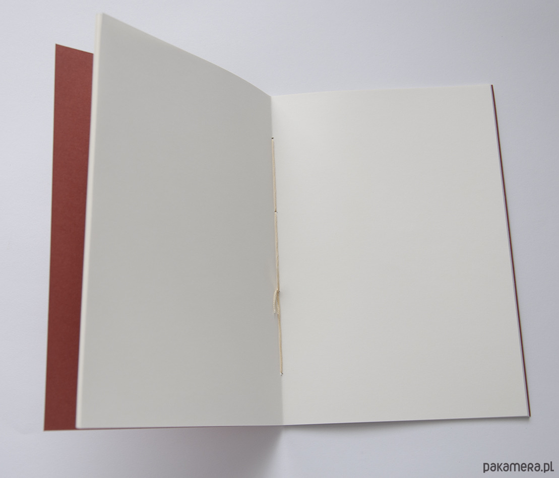 Całość jest ręcznie szyta kolorowymi nićmi. W środku posiada 40 stron gładkiego,