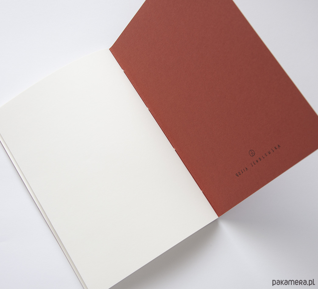 Zeszyt został zaprojektowany i wykonany w 100% ręcznie w Krakowie. Posiada druk ręczny na okładce techniką linorytu oraz autorską grafikę.