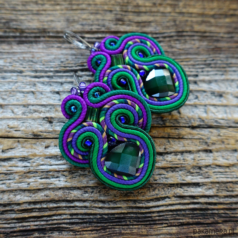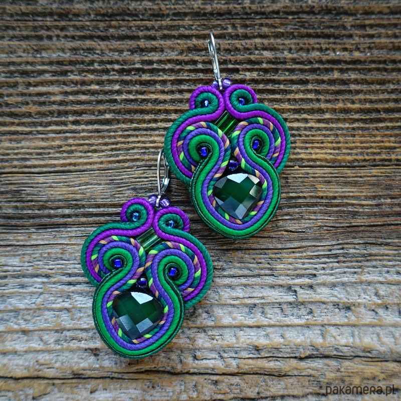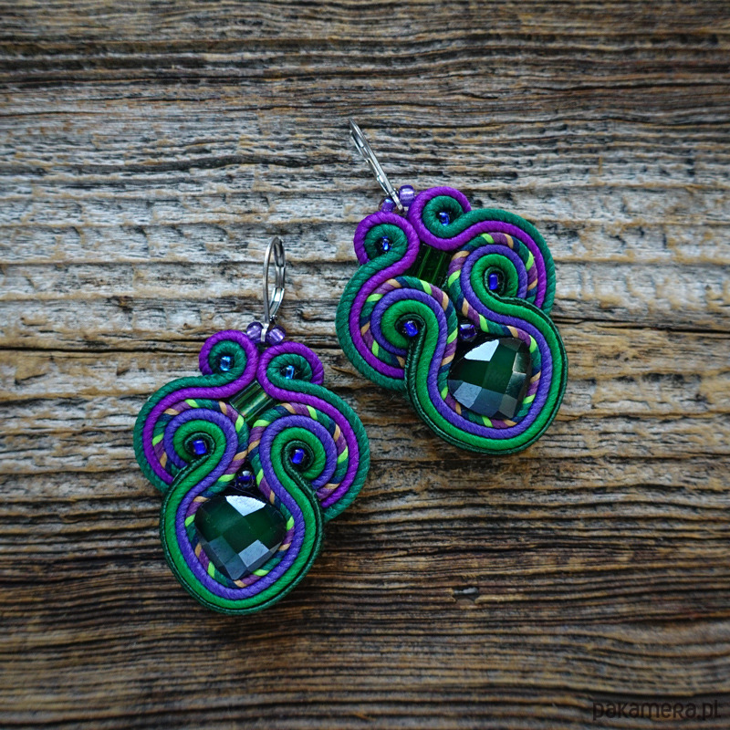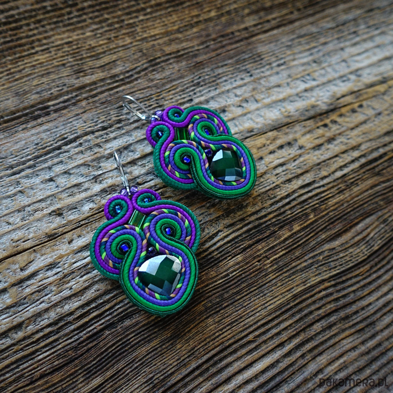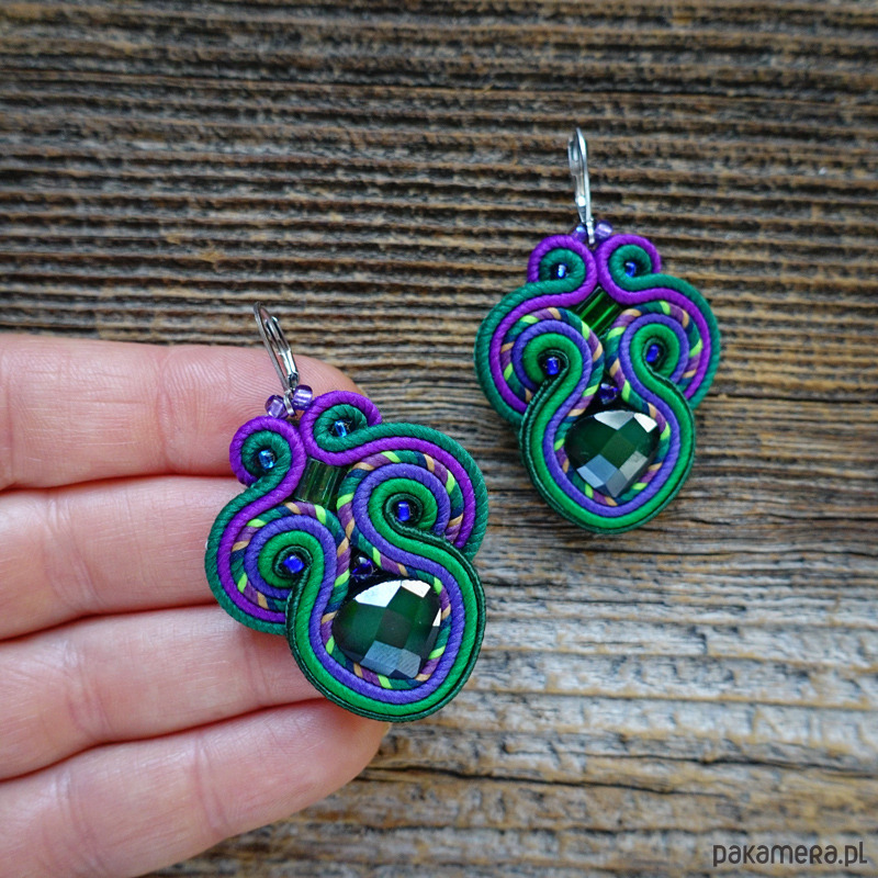Kolczyki wykonane są metodą haftu soutache.
