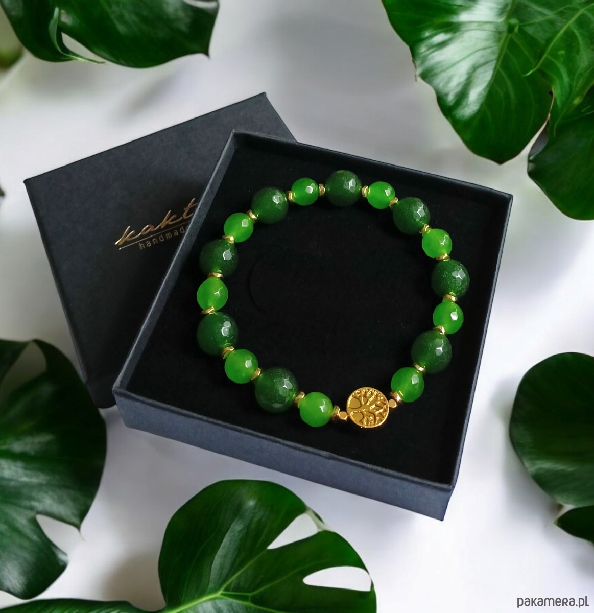 Zielona bransoletka : drzewo życia : zielony jadeit i hematyt