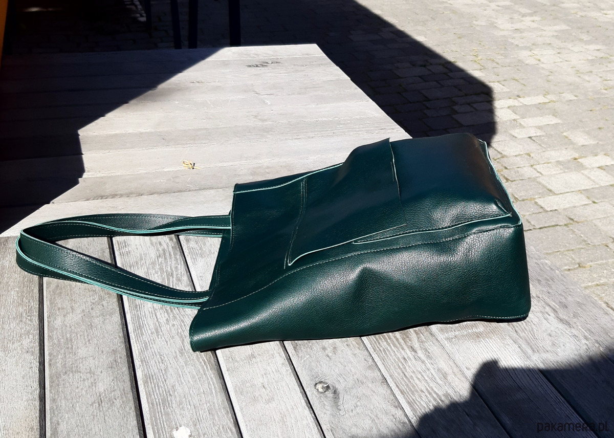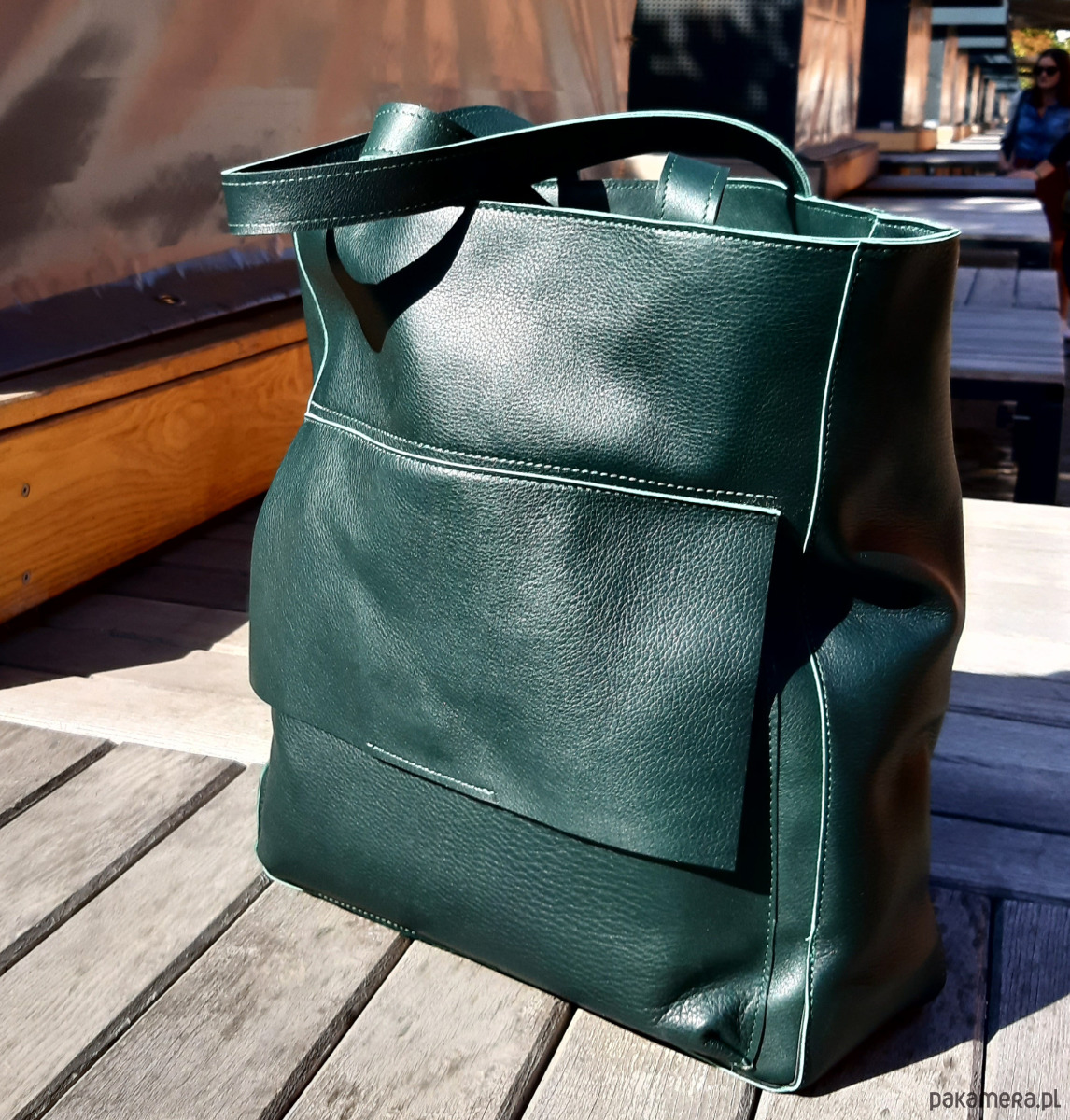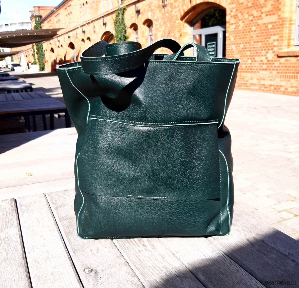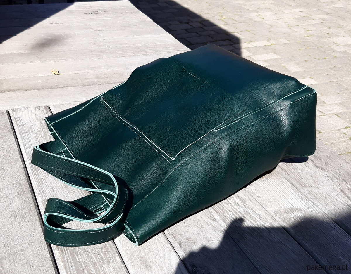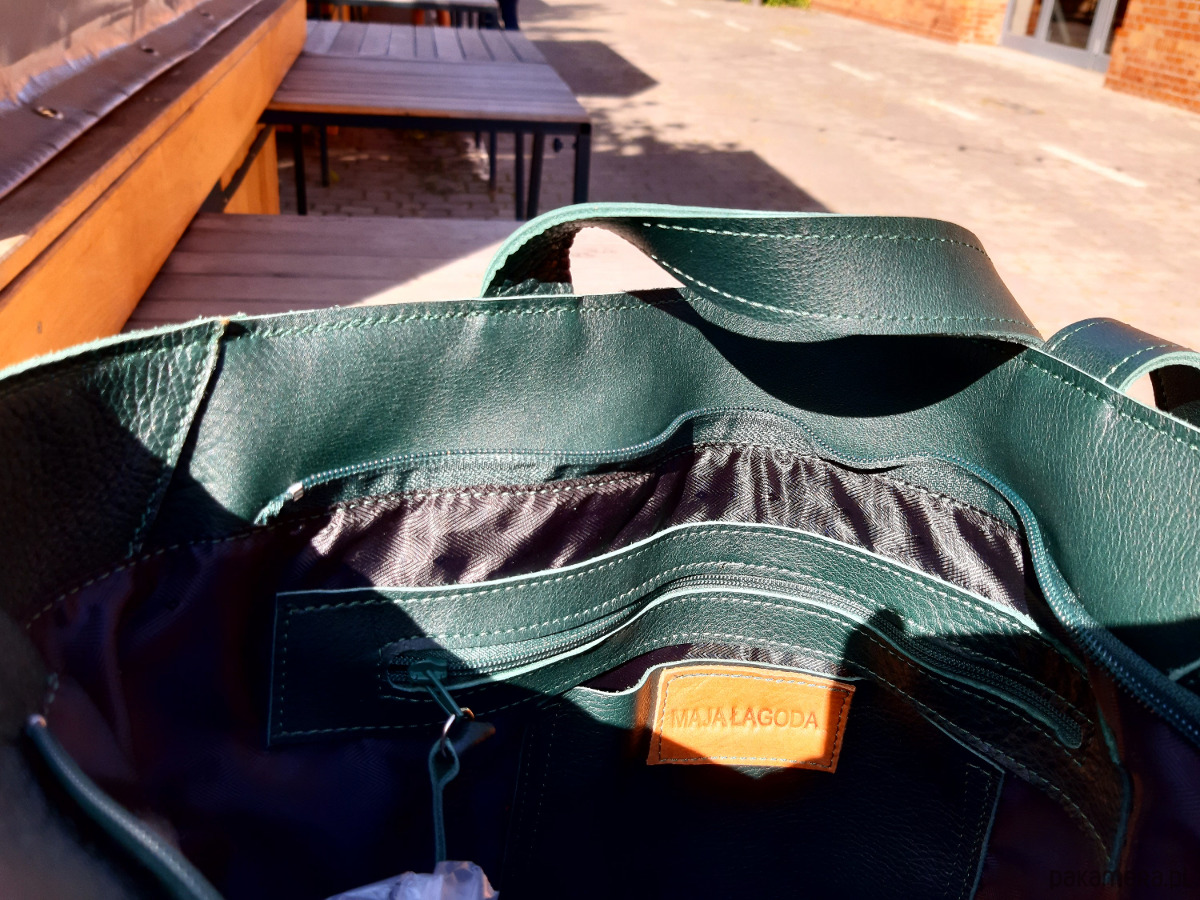 Piękna zielona butelkowa skórzana torba. Uszyta ze skóry naturalnej , licowej.
