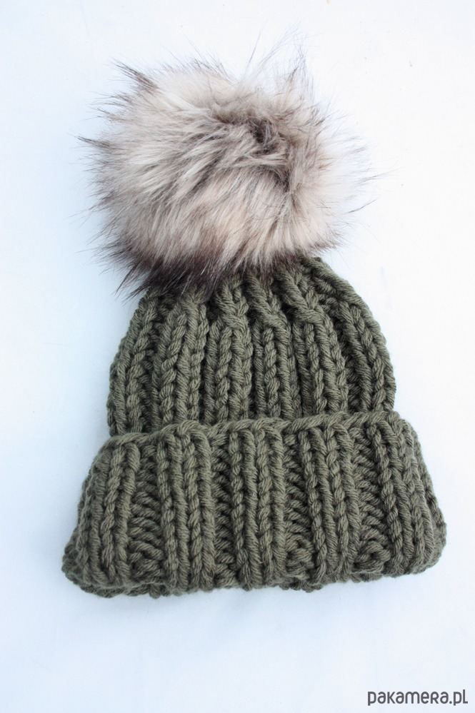 Ręcznie wykonana czapka w kolorze zielonym. Mieszanka z wełną .