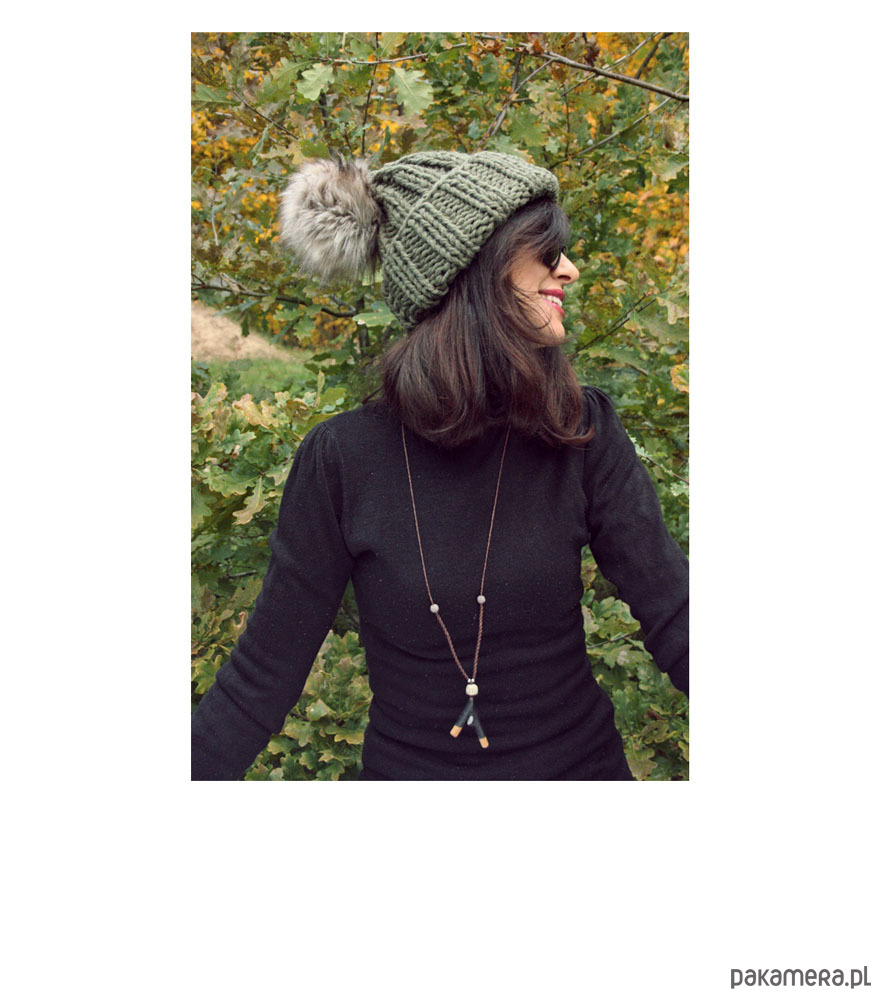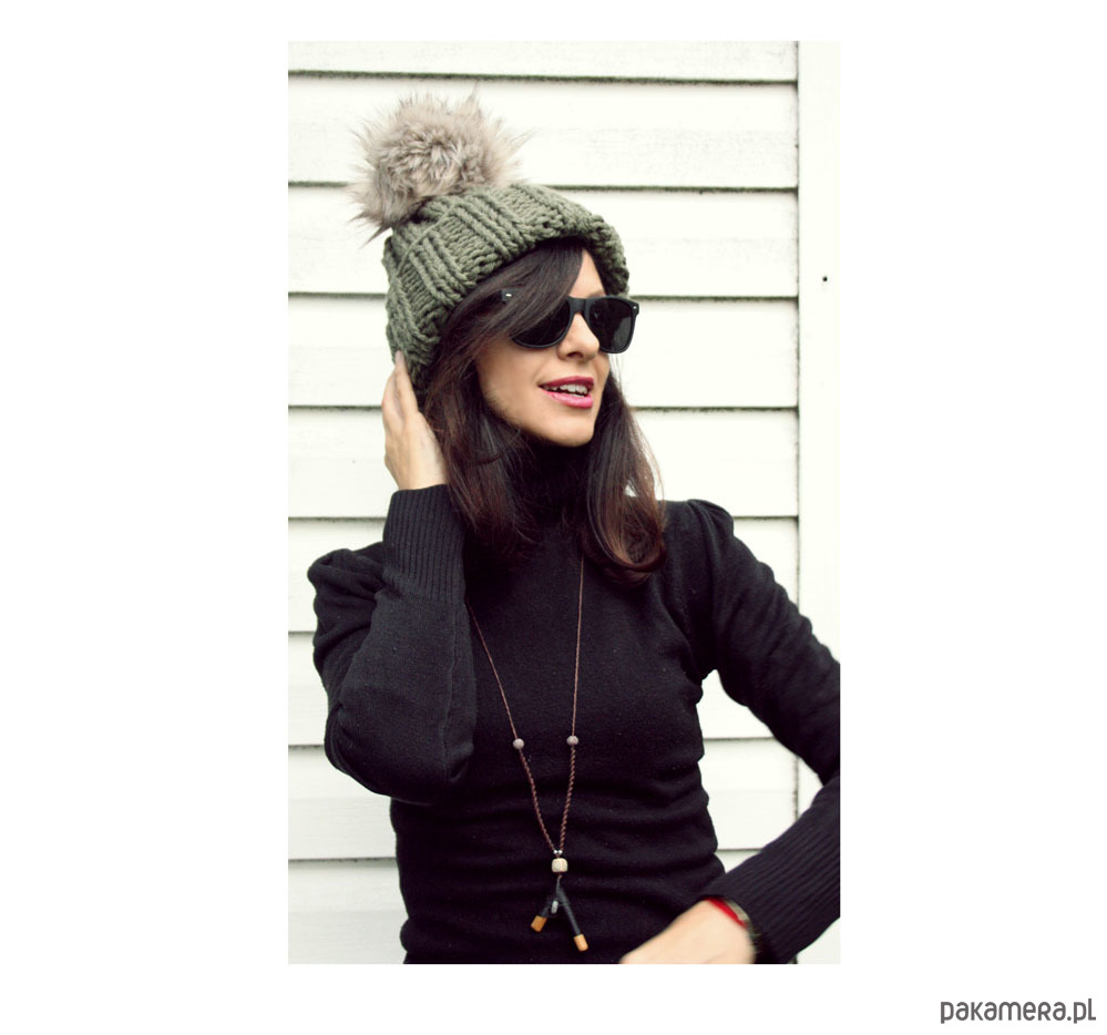 Ręcznie wykonana czapka w kolorze zielonym. Mieszanka z wełną .