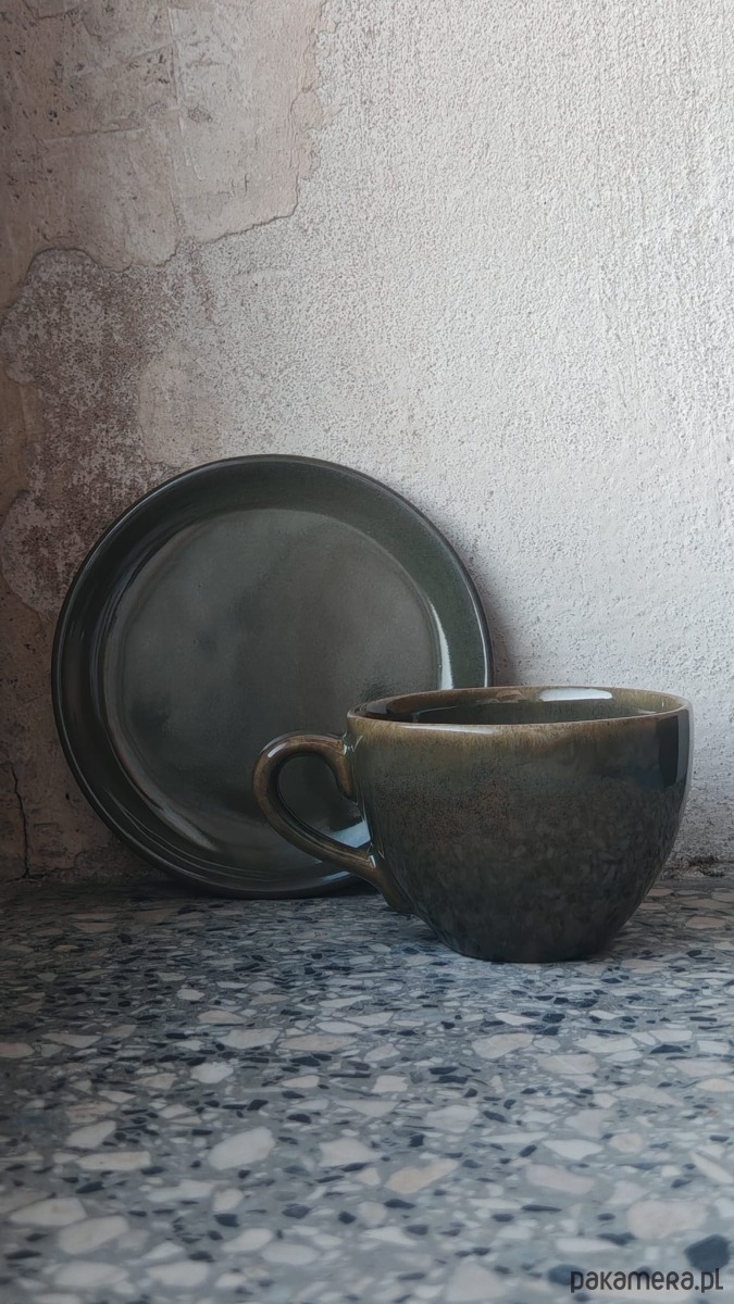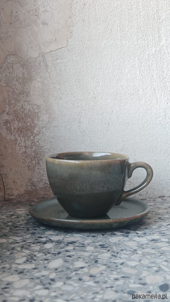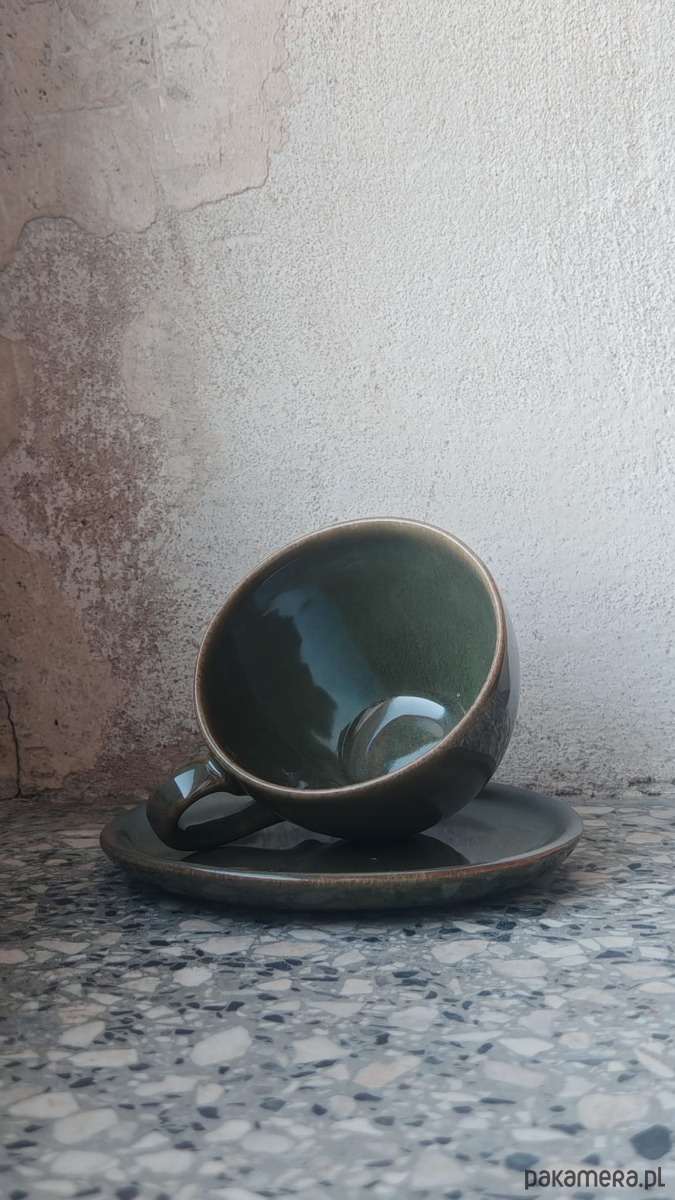 Zielona filiżanka z talerzykiem