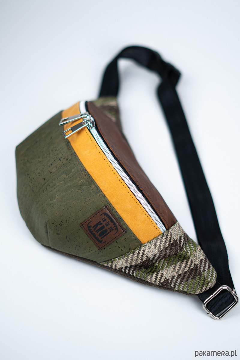 Zielona khaki męska nerka saszetka z korka unisex ODCIENIE ZIEMI