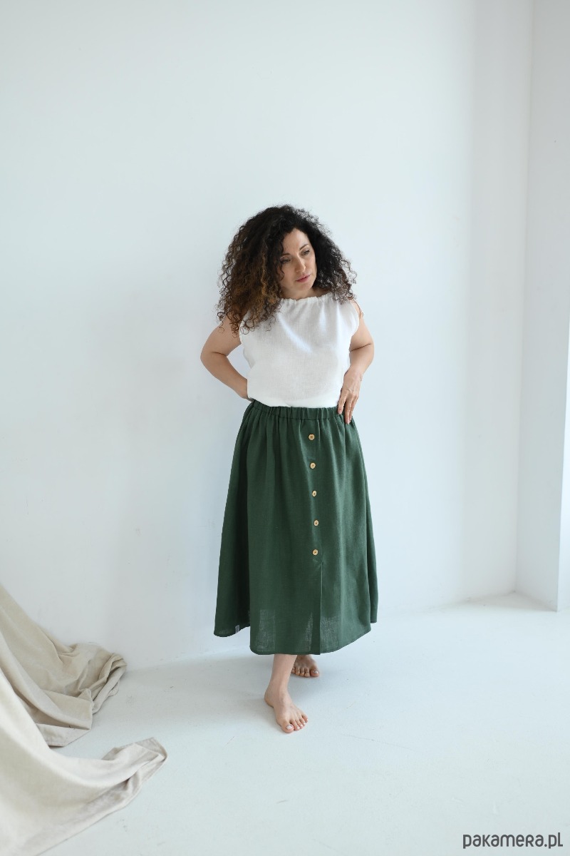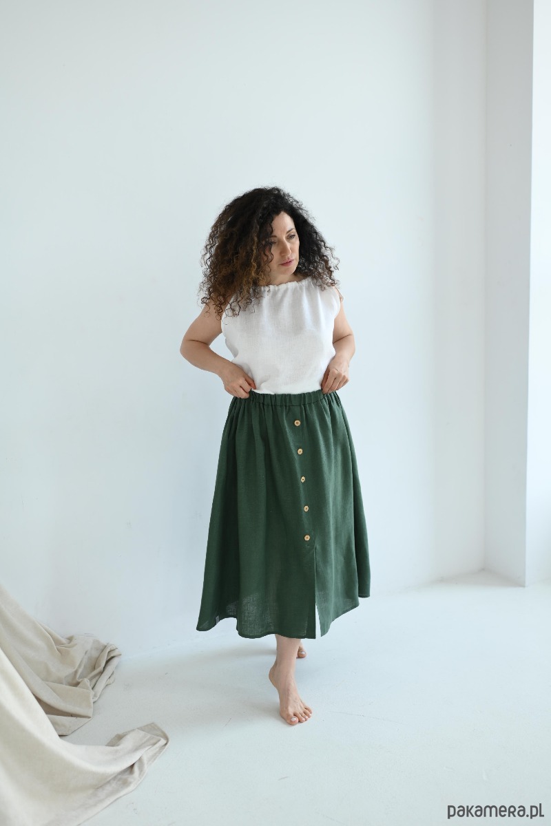 Zielona lniana spódnica z guzikami