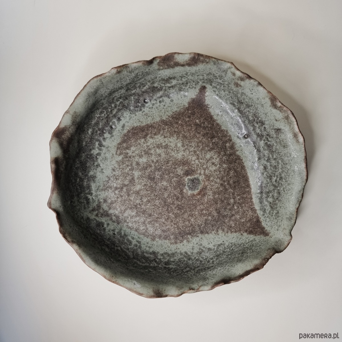 Zielona patera, która dzięki swojej ciekawej formie może równocześnie służyć jako obiekt ceramiczny, tworząc piękny element aranżacji.