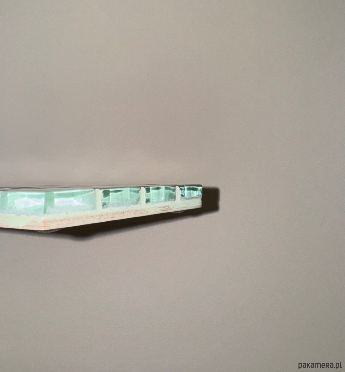 materiał: płytki szklane, sklejka naturalna, fuga ceramiczna