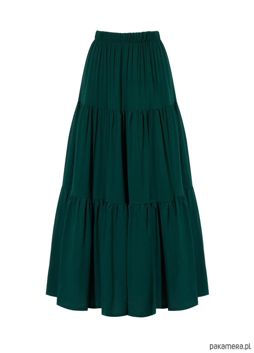 Zwiewna spódnica maxi w kolorze butelkowej zieleni uszyta z jakościowej wiskozy.