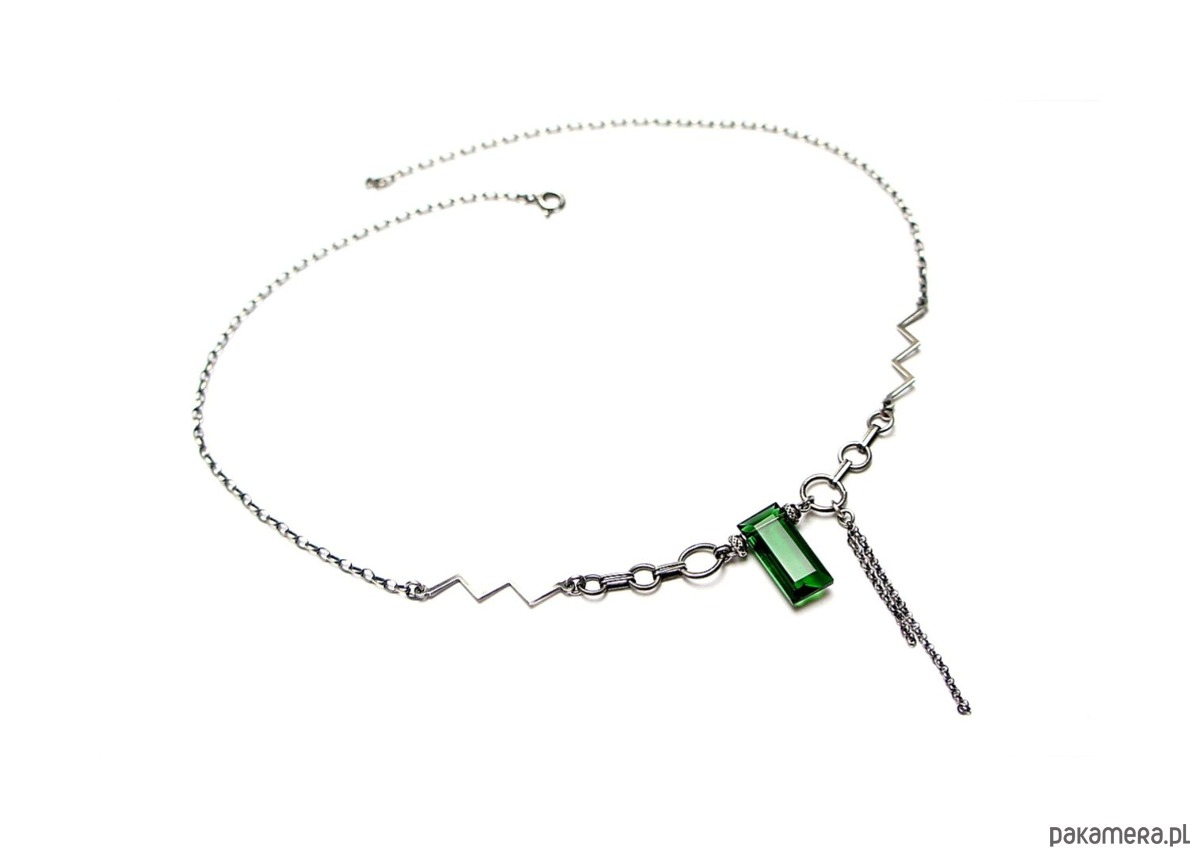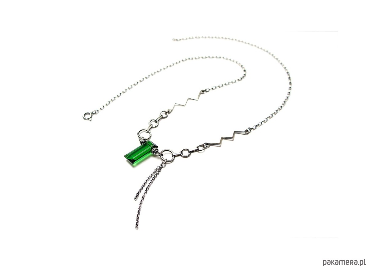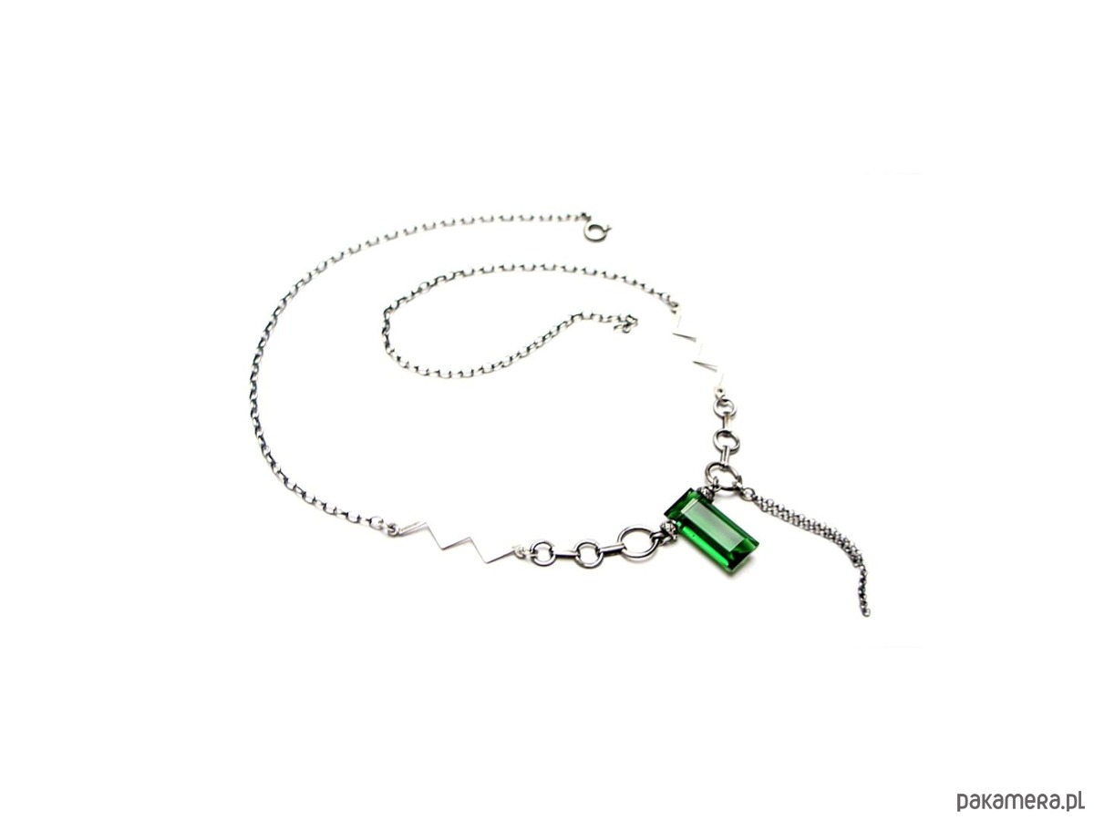 Naszyjnik wykonany ze srebra [pr. 925] w połączeniu ze sztabką z kwarcu [wymiary sztabki 18mm x 8mm]. Całość zaoksydowana i przetarta. Długość naszyjnika około 45,5cm. Biżuteria ozdobnie zapakowana w pudełeczko z logo firmy.