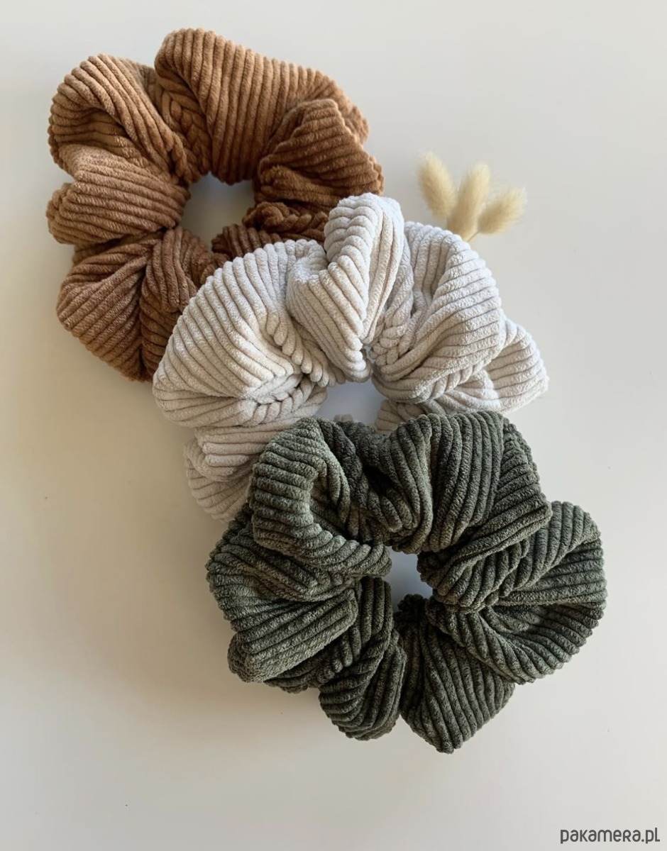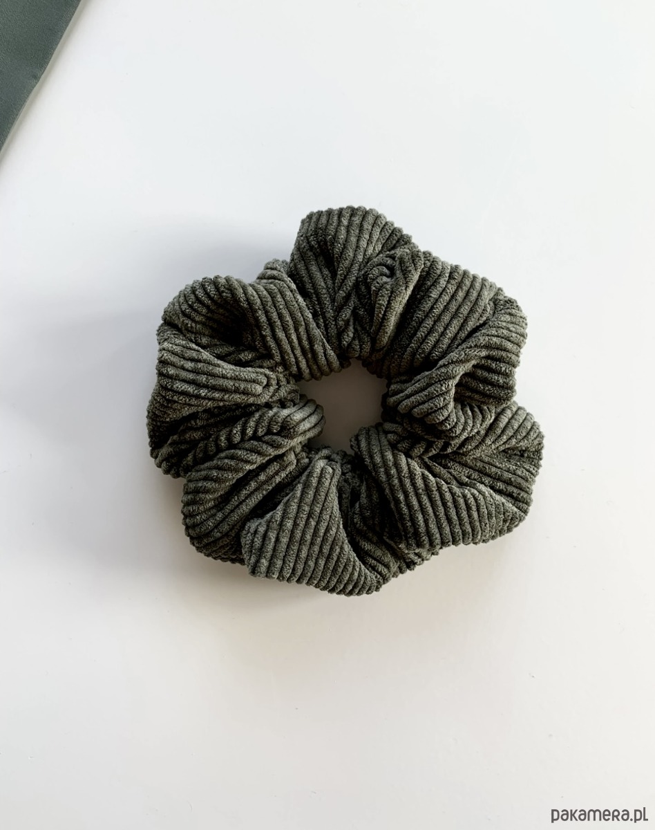 Zielona sztruksowa scrunchie Verde to stylowy dodatek, który doda uroku każdej stylizacji.
