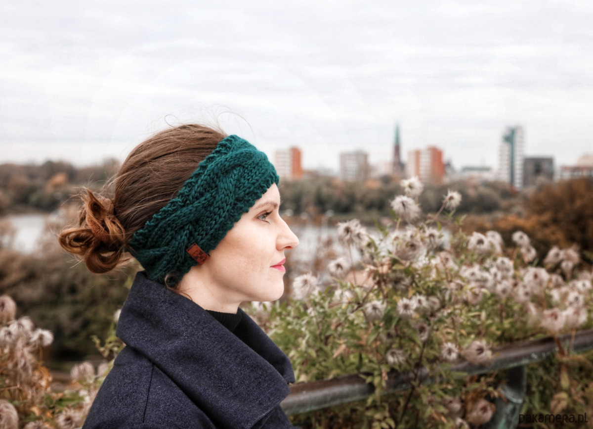 Zielona wełniana opaska warkoczowa to produkt wykonany na drutach z miękkiej, 100% wełny peruwiańskiej w przepięknym kolorze zieleni leśnej. Jest ciepłym i eleganckim dodatkiem na głowę, który pięknie wygląda w przeróżnych konfiguracjach: noszony na włosach, pod włosami, do związanych w kucyk czy splecionych w warkocz. Wzór warkoczowy kojarzy się z zimowymi stylizacjami i pięknie podkreśli Twoją.