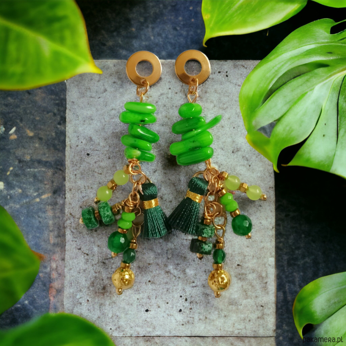 OSTATNIE! zielone kolczyki Boho : długie i fikuśne