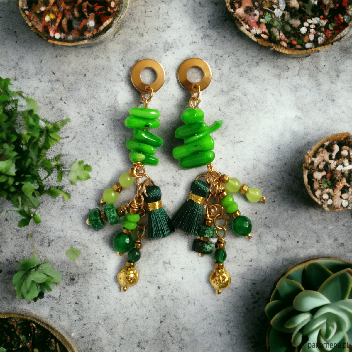 Zielone kolczyki Boho : długie i fikuśne