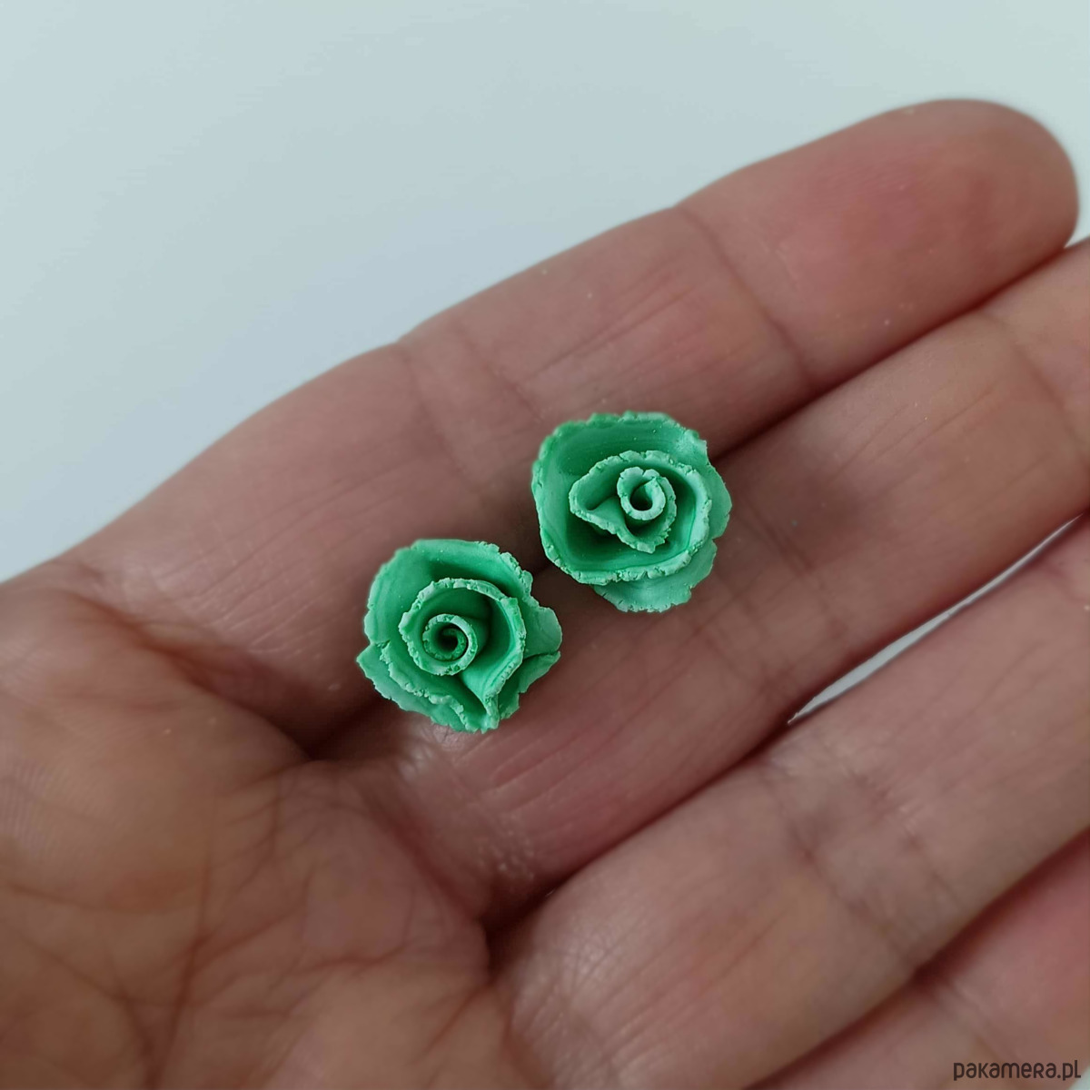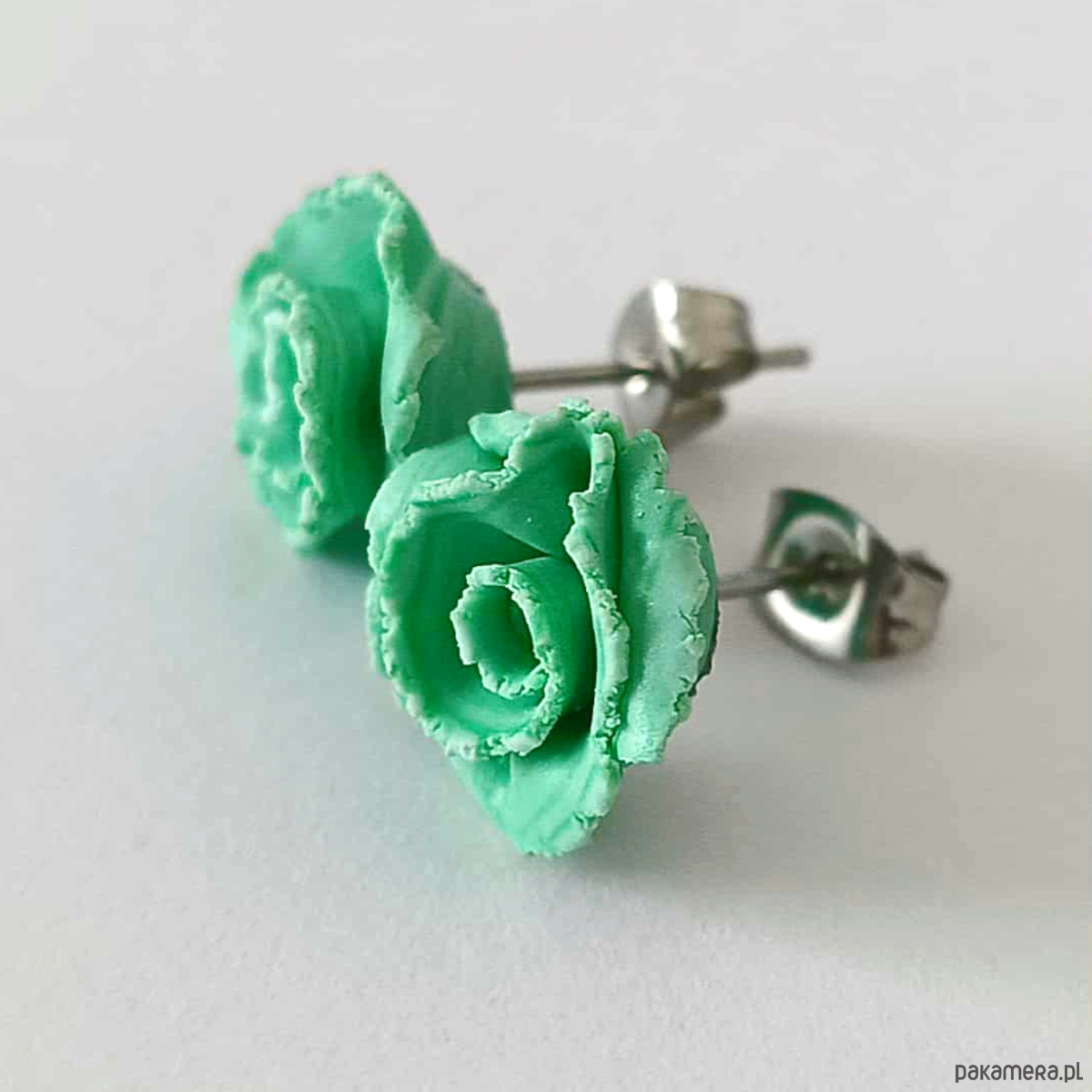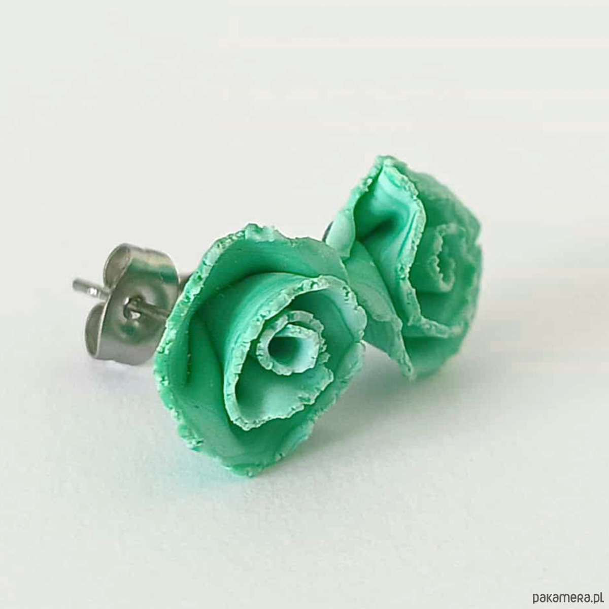 Urocze kolczyki w kształcie delikatnych zielonych różyczek, wykonane ręcznie z masy polimerowej. Każda para jest unikatowa i powstała z dbałością o najmniejsze detale. Idealne dla miłośniczek subtelnej, kwiatowej biżuterii. Lekkie i wygodne w noszeniu, doskonałe na co dzień lub jako drobny prezent.