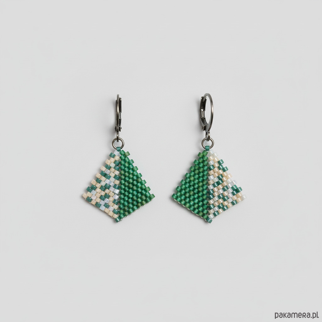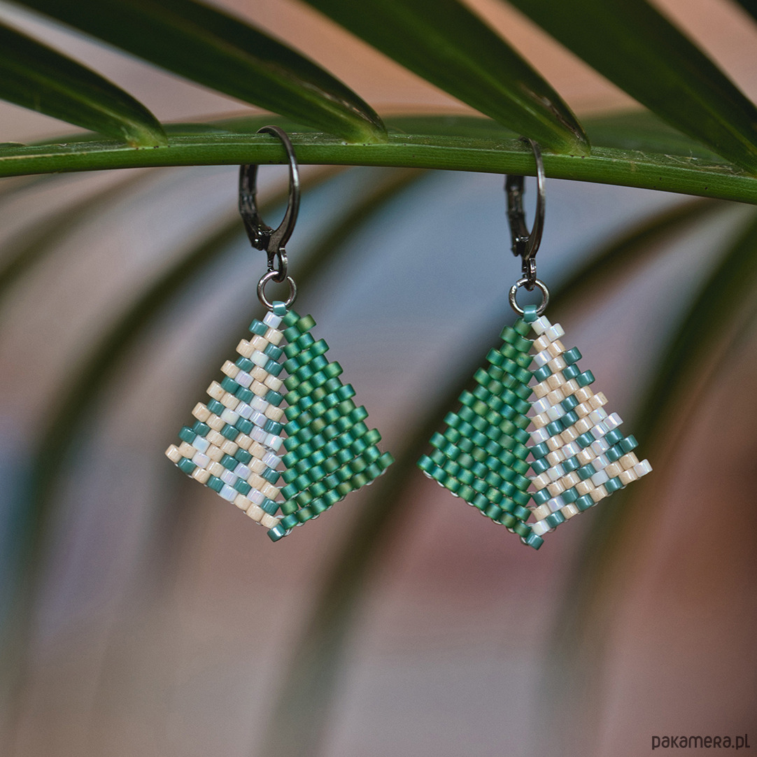 Kolczyki wykonane są trudną i czasochłonną metodą beadingu. Są bardzo lekkie.