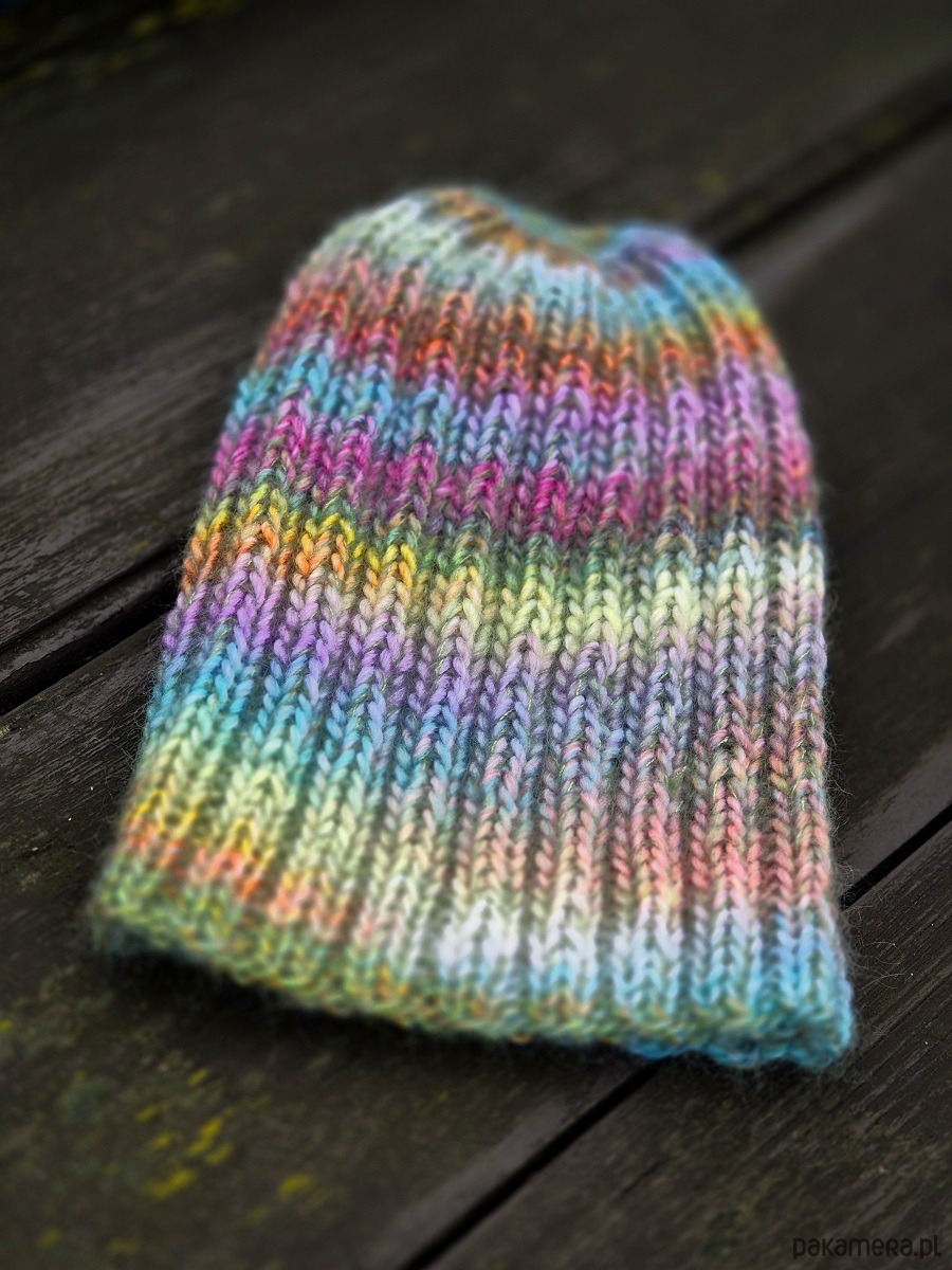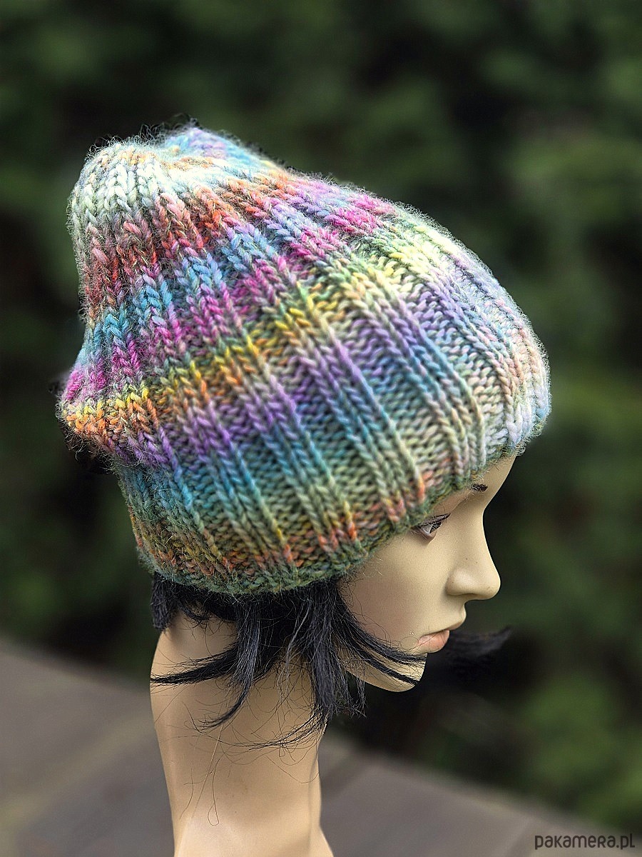 Ciepła, mięsista, miękka i cudowna w dotyku czapka wykonana ręcznie na drutach. Połączyłam cieniutką nitkę 75% kid moher/25% jedwab z włoską kolorową włóczka (50% wełna dziewicza, 50% poliakryl). Czapka bezszwowa, świetnie dopasowuje się do głowy.
