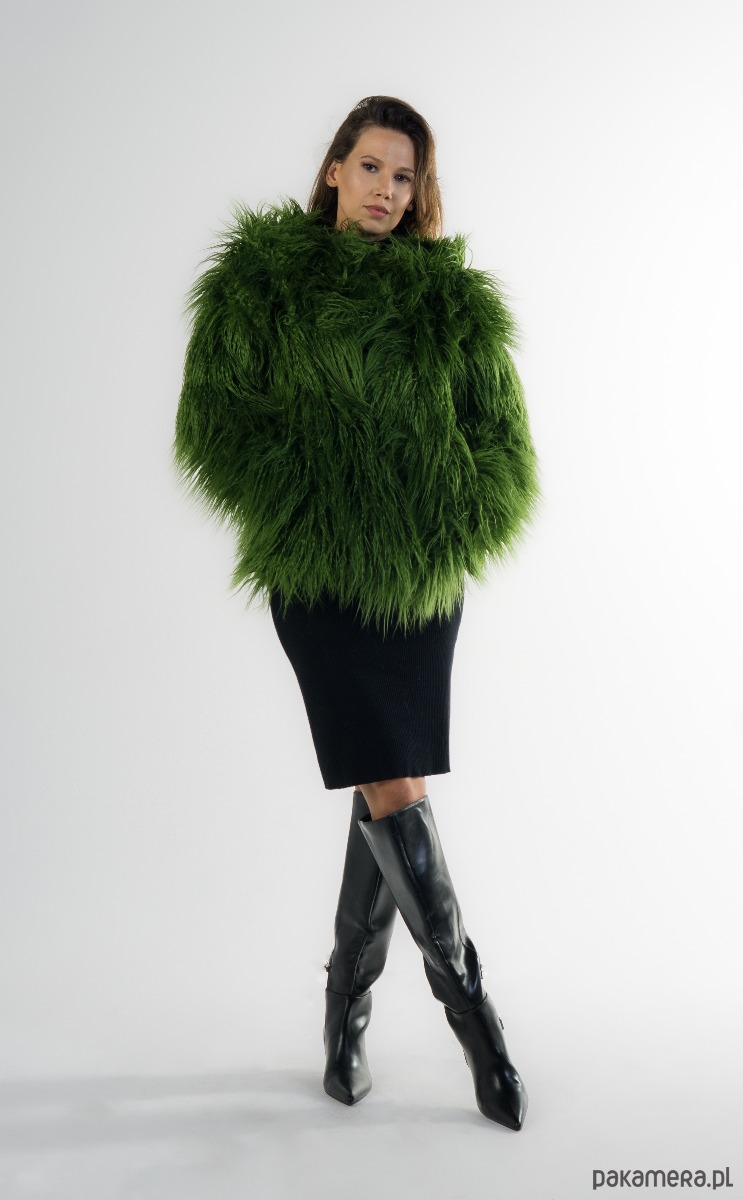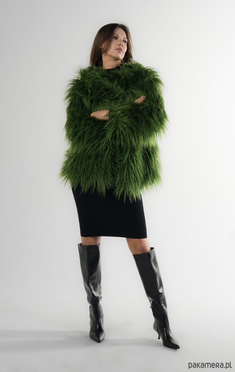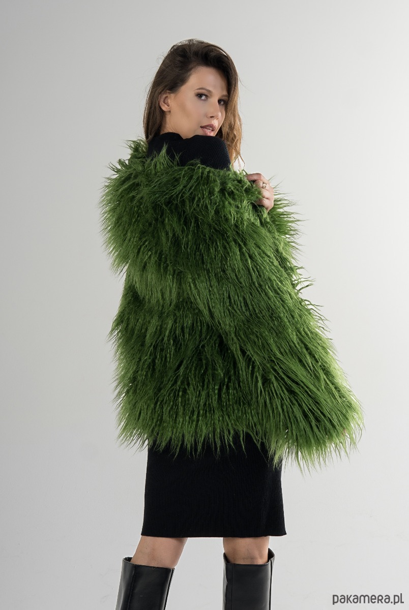 Zielona kurtka ze sztucznego futra