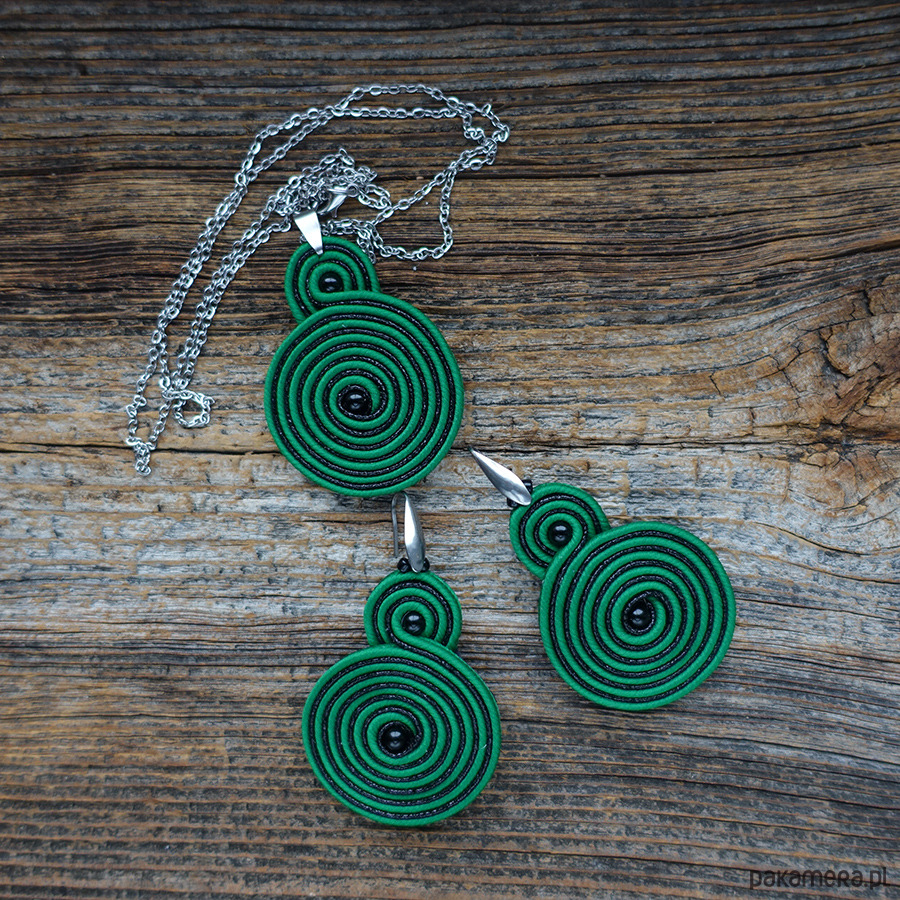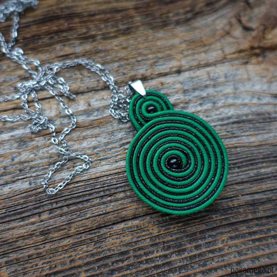 Zielono czarne spirale - naszyjnik sutasz