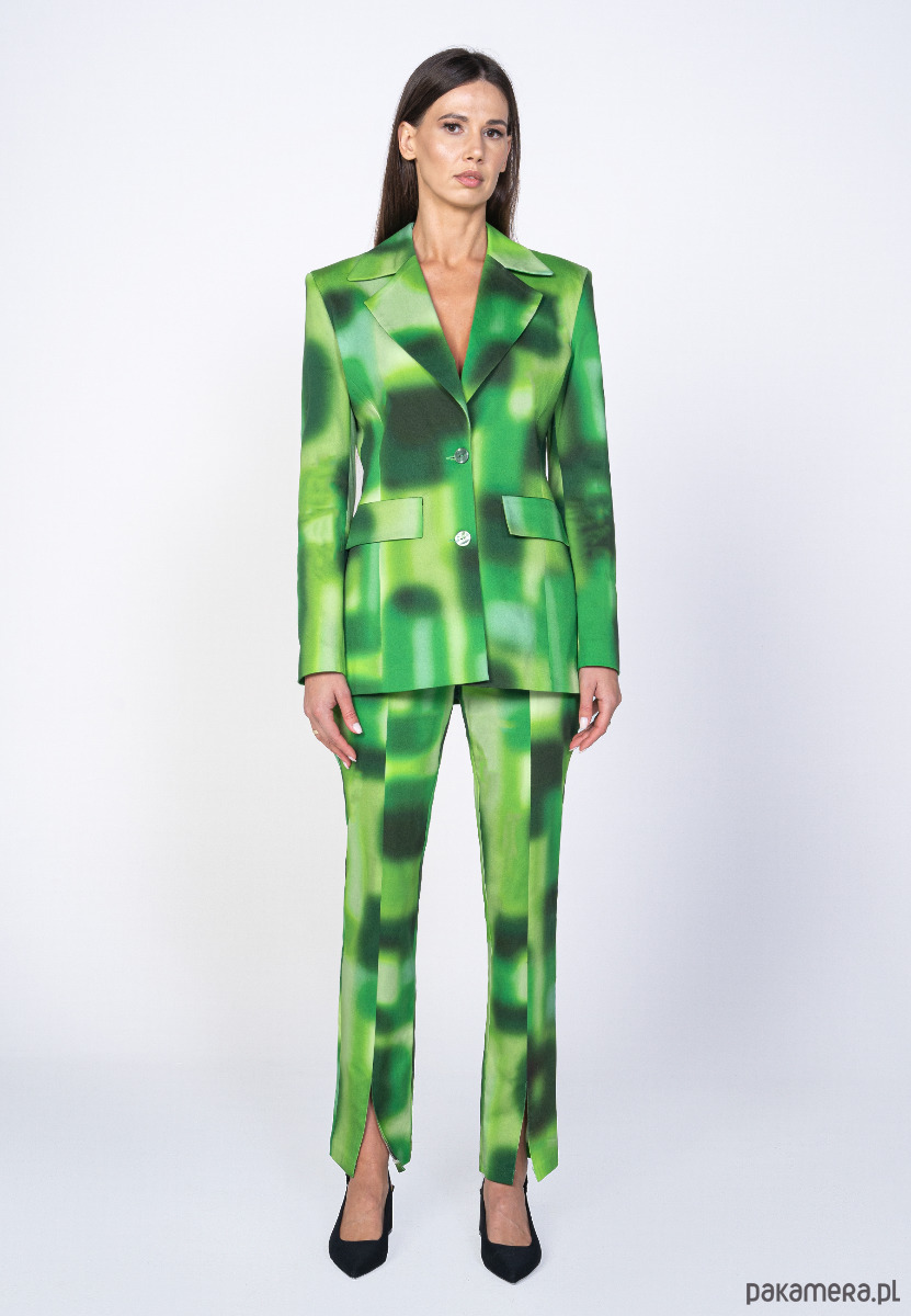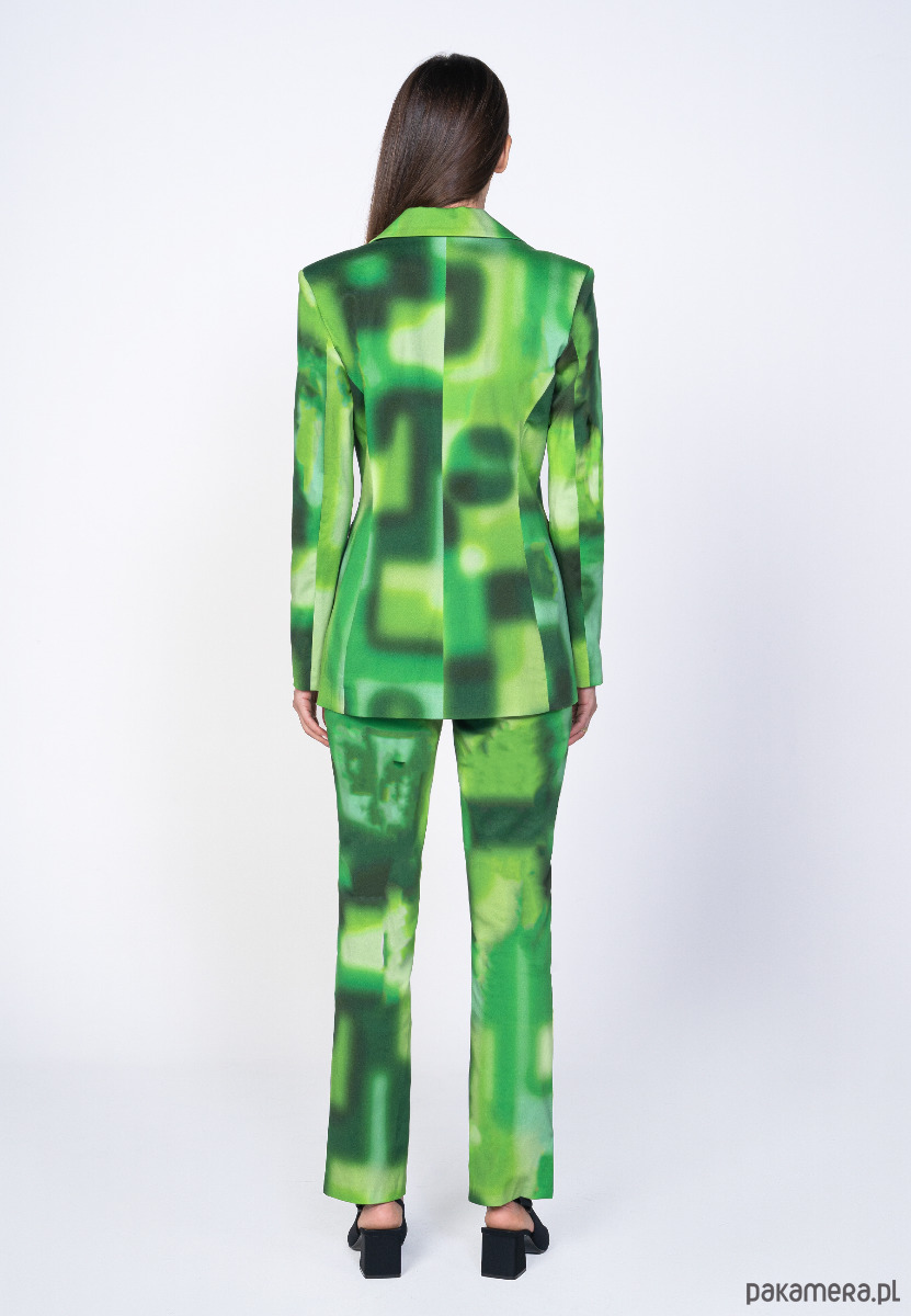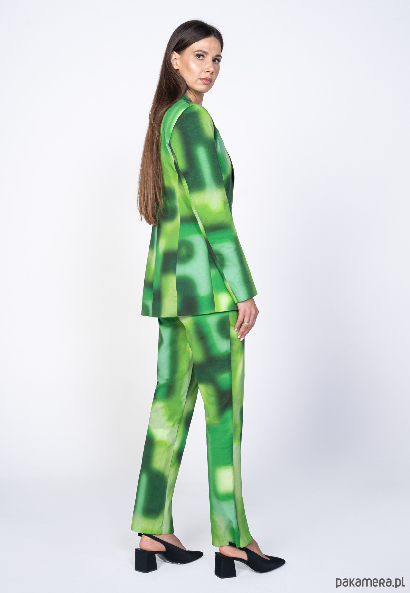 Przedstawiamy Wam nasz zielony bawełniany garnitur damski. Przenieś się do artystycznej sfery i poczuj prawdziwą WOLNOŚĆ. Abstrakcyjny wzór sprawi, że Twój look będzie przepełniony fantazją, a luźny krój doda Twojej stylizacji niezwykłej swobody.