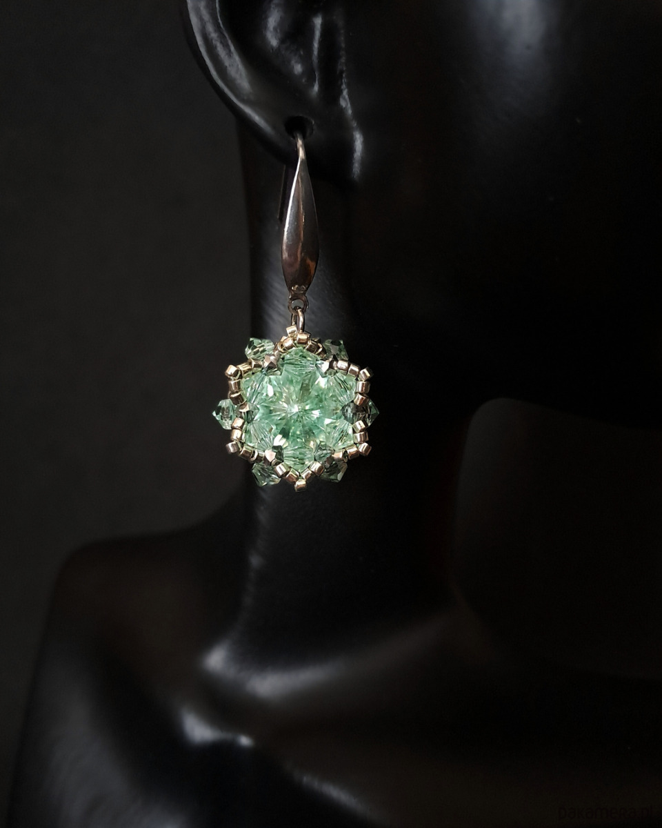 Preciosa to renomowana europejska marka specjalizująca się w produkcji kryształów i kamieni jubilerskich o najwyższej jakości szlifu i blasku. Kamienie Rivoli Maxima cenione są za intensywność koloru i precyzję wykonania. Całość kompozycji uzupełniają kryształki Preciosa Bicone oraz precyzyjnie dobrane koraliki Miyuki Delica, tworząc dopracowaną, elegancką formę.
