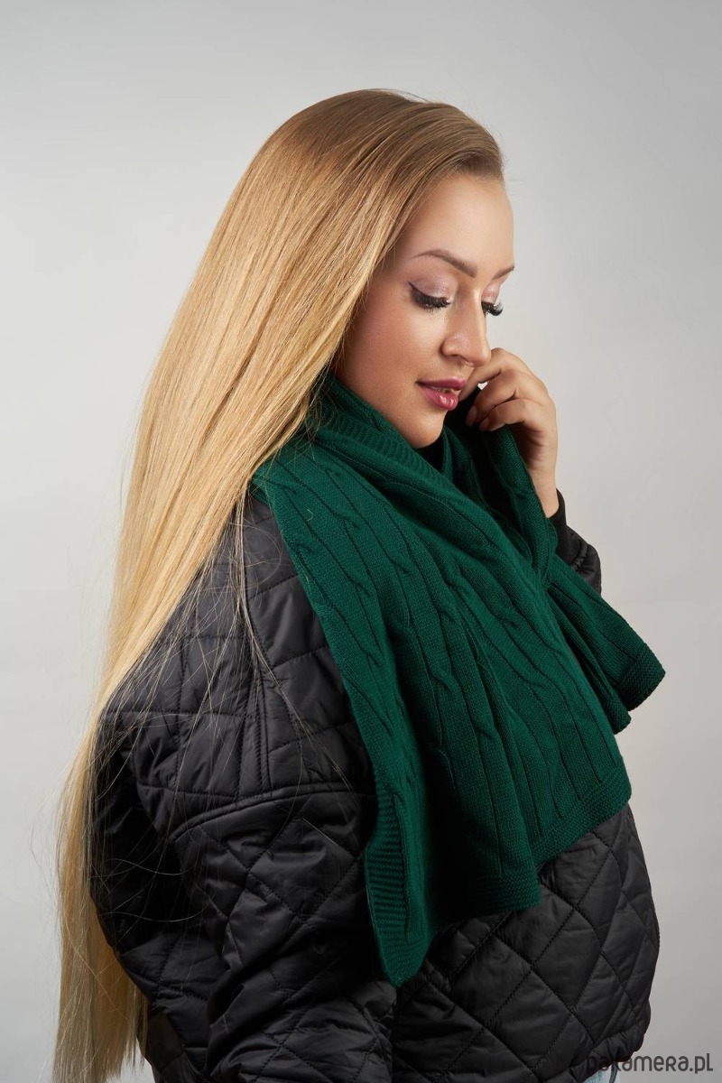 Damski komplet na zimę. Modna czapka, długi ciepły szal oraz stylowe rękawiczki.