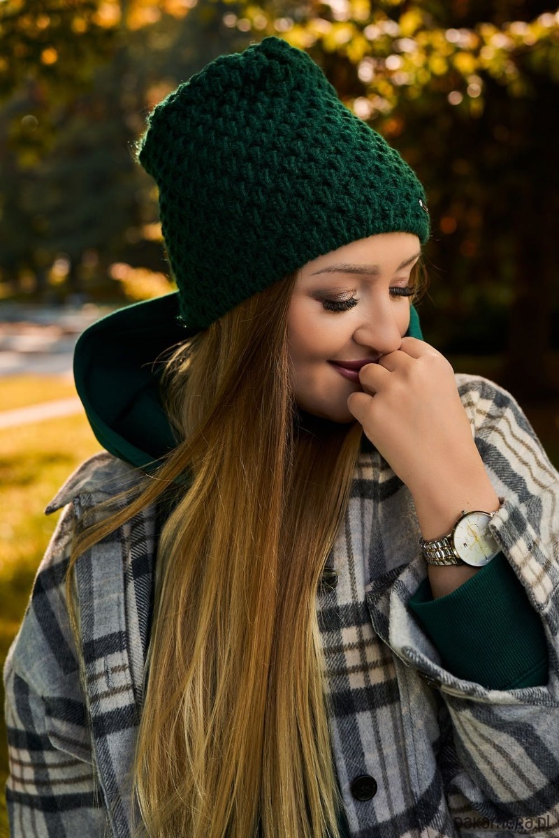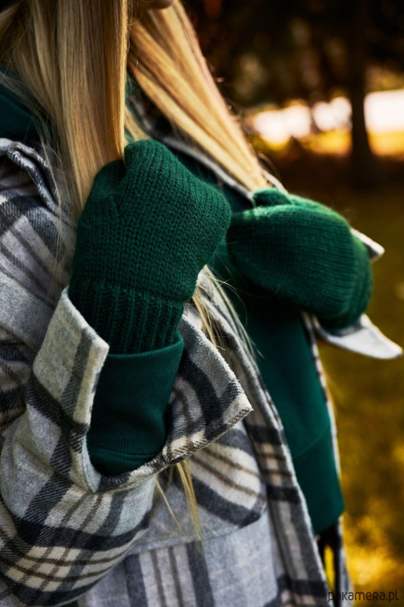 Zielony komplet damski czapka szalik rękawiczki ciepły zestaw zimowy