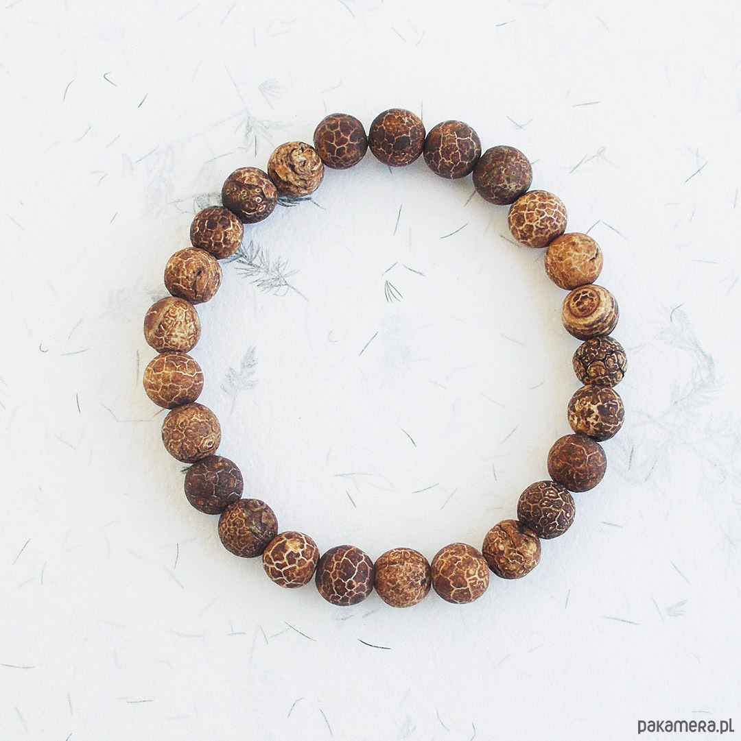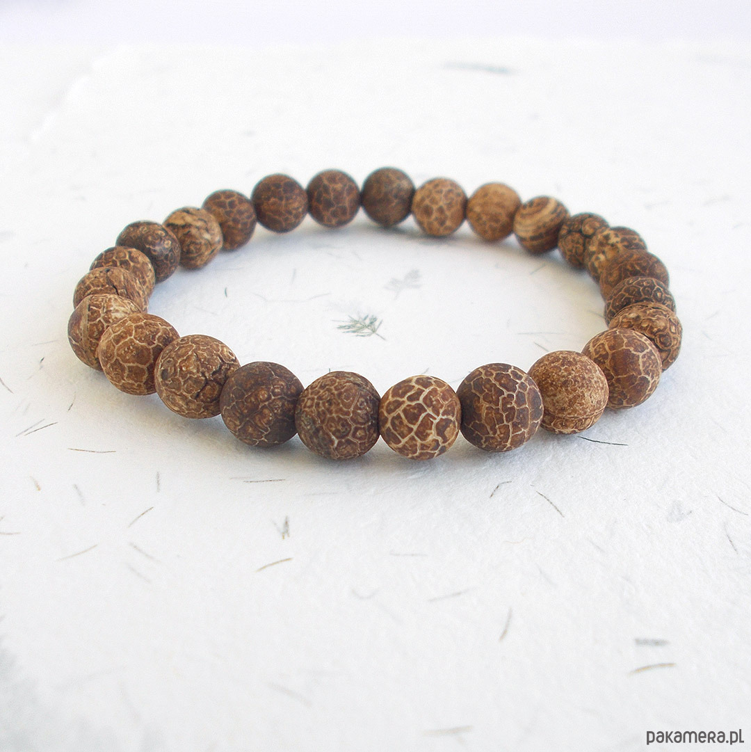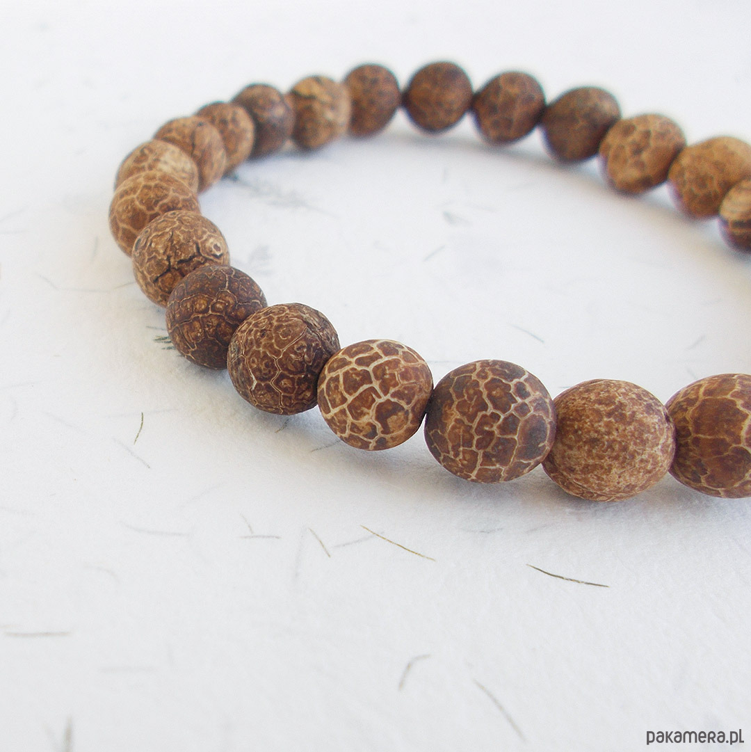 agat trawiony matowe kule 6 mm brązowe, solidna gumka