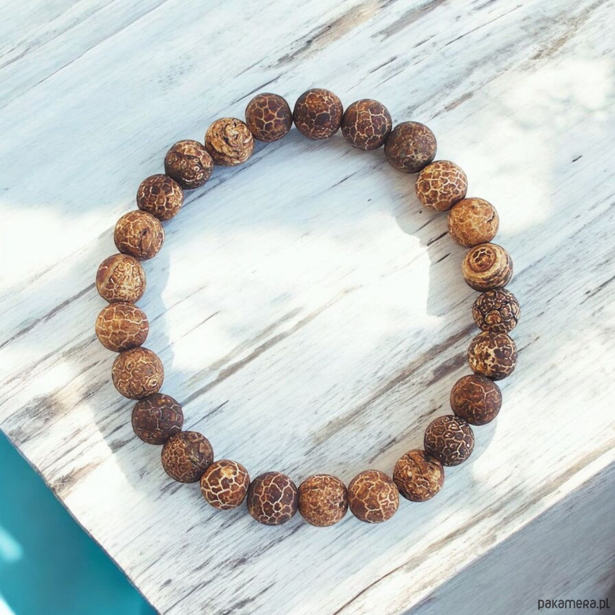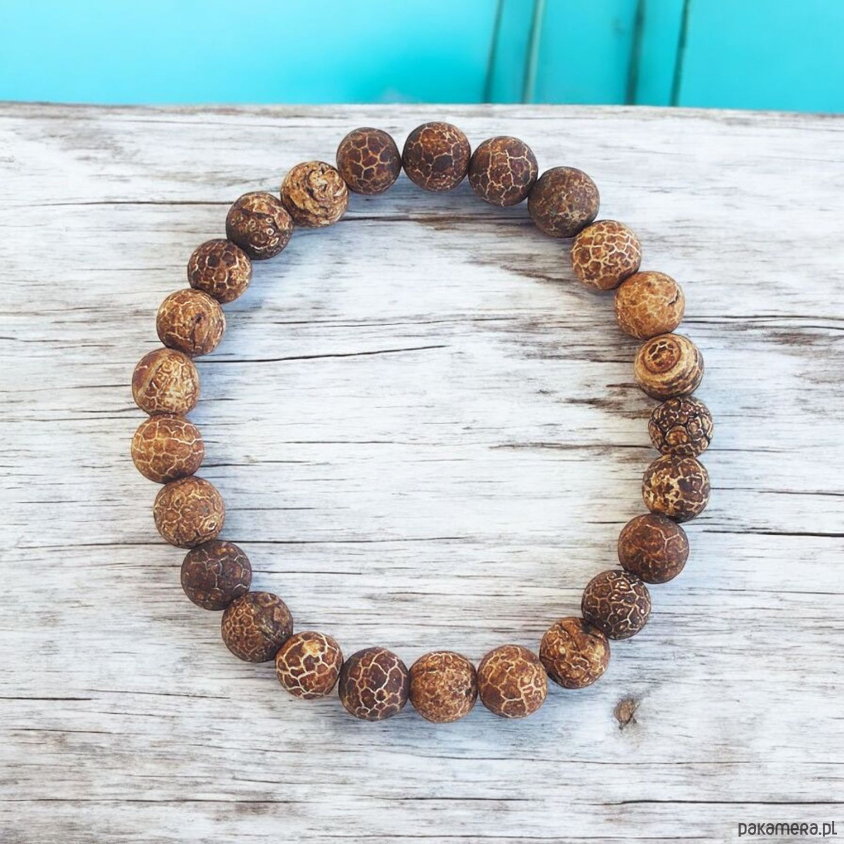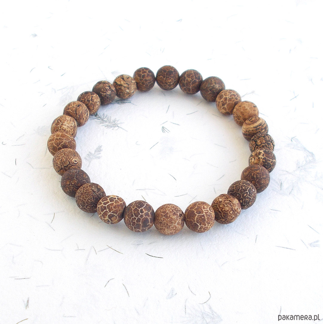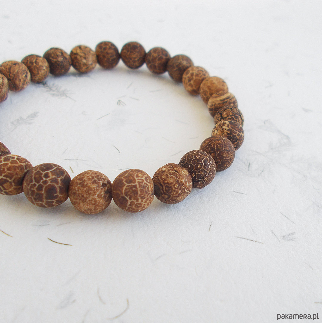 agat trawiony matowe kule 6 mm brązowe, solidna gumka