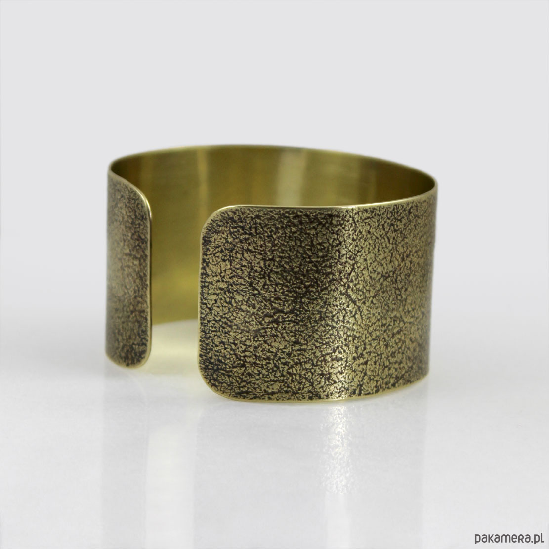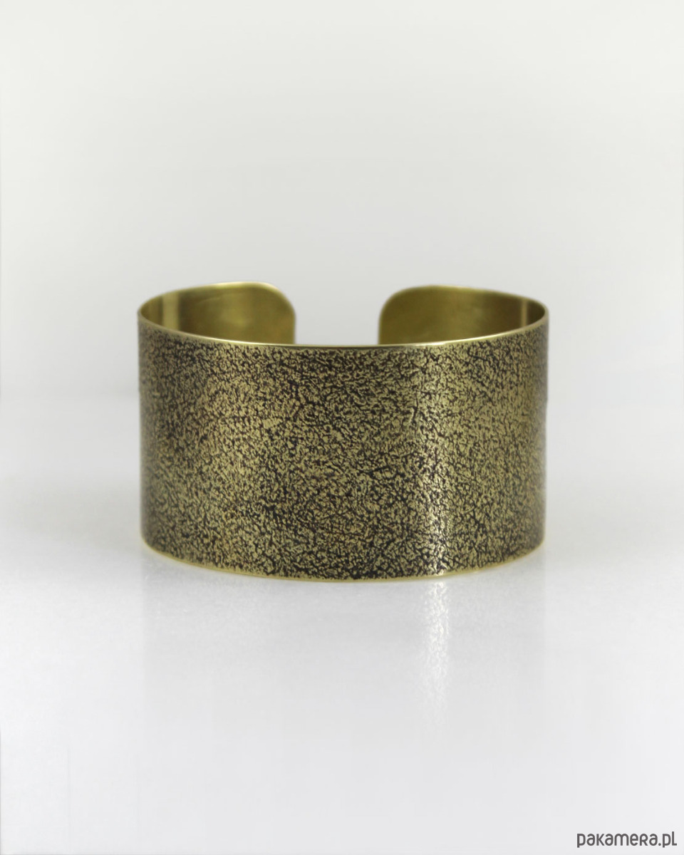 Bransoletka została wykonana w całości z mosiądzu, ma ok 3 cm szerokości i ok 17 cm długości. Rozmiar uniwersalny - pasuje praktycznie na każdy nadgarstek.