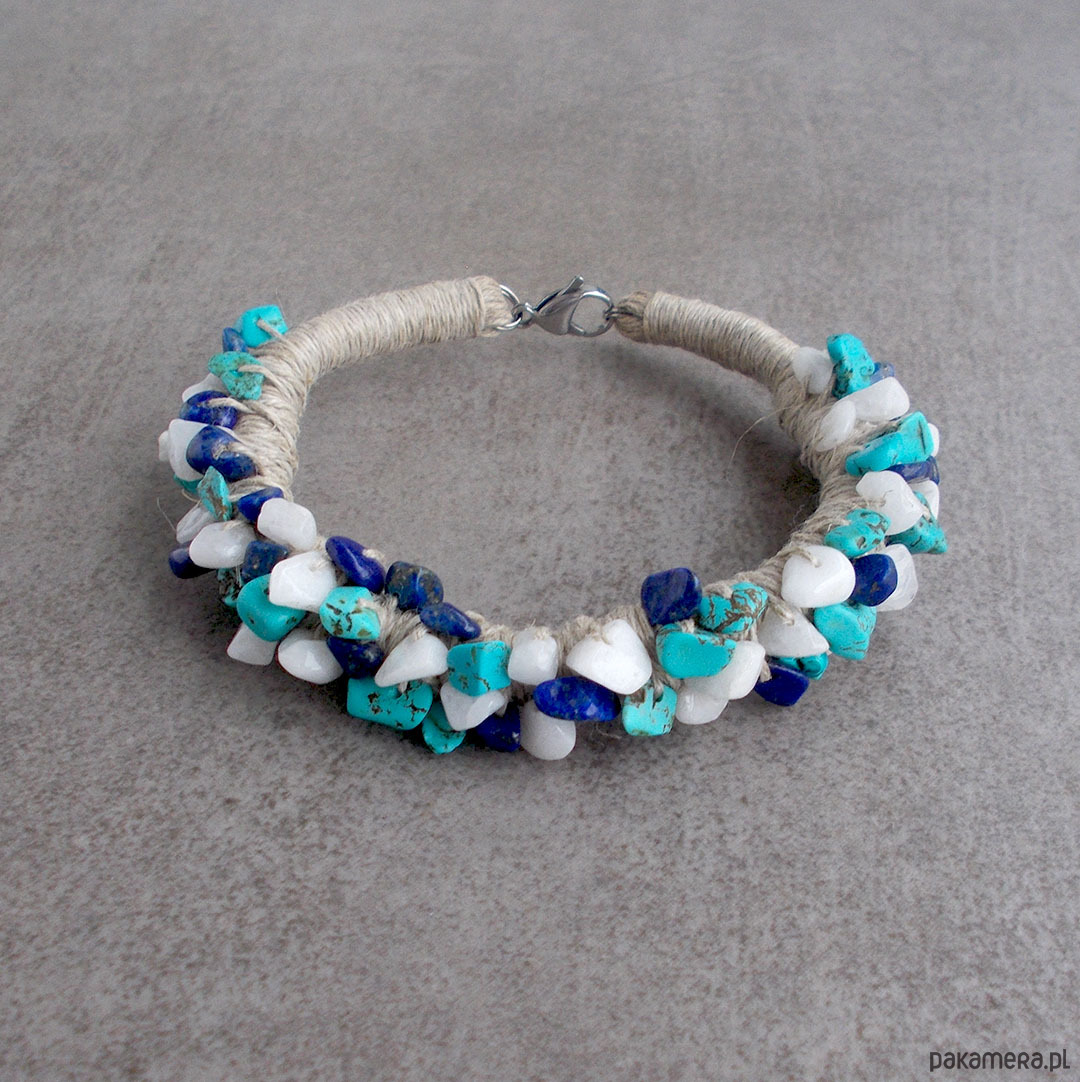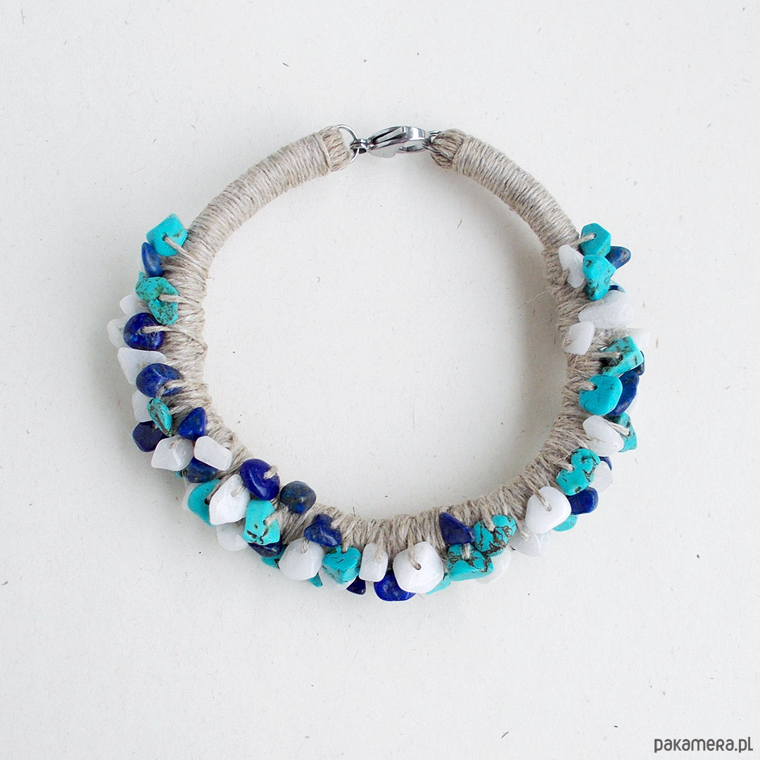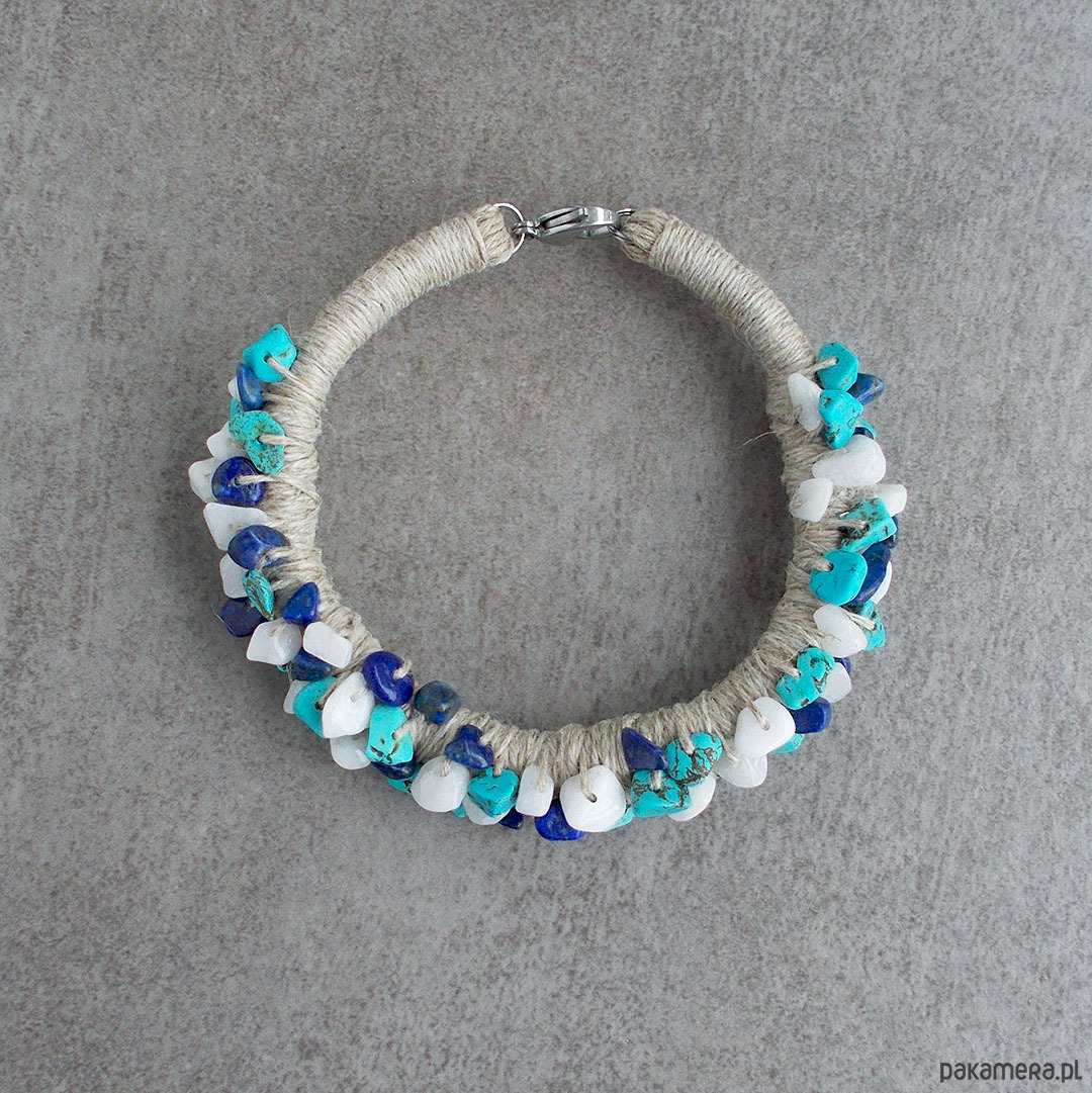 lapis lazuli, howlit turkusowy, kwarc lodowy, len naturalny, stal chirurgiczna