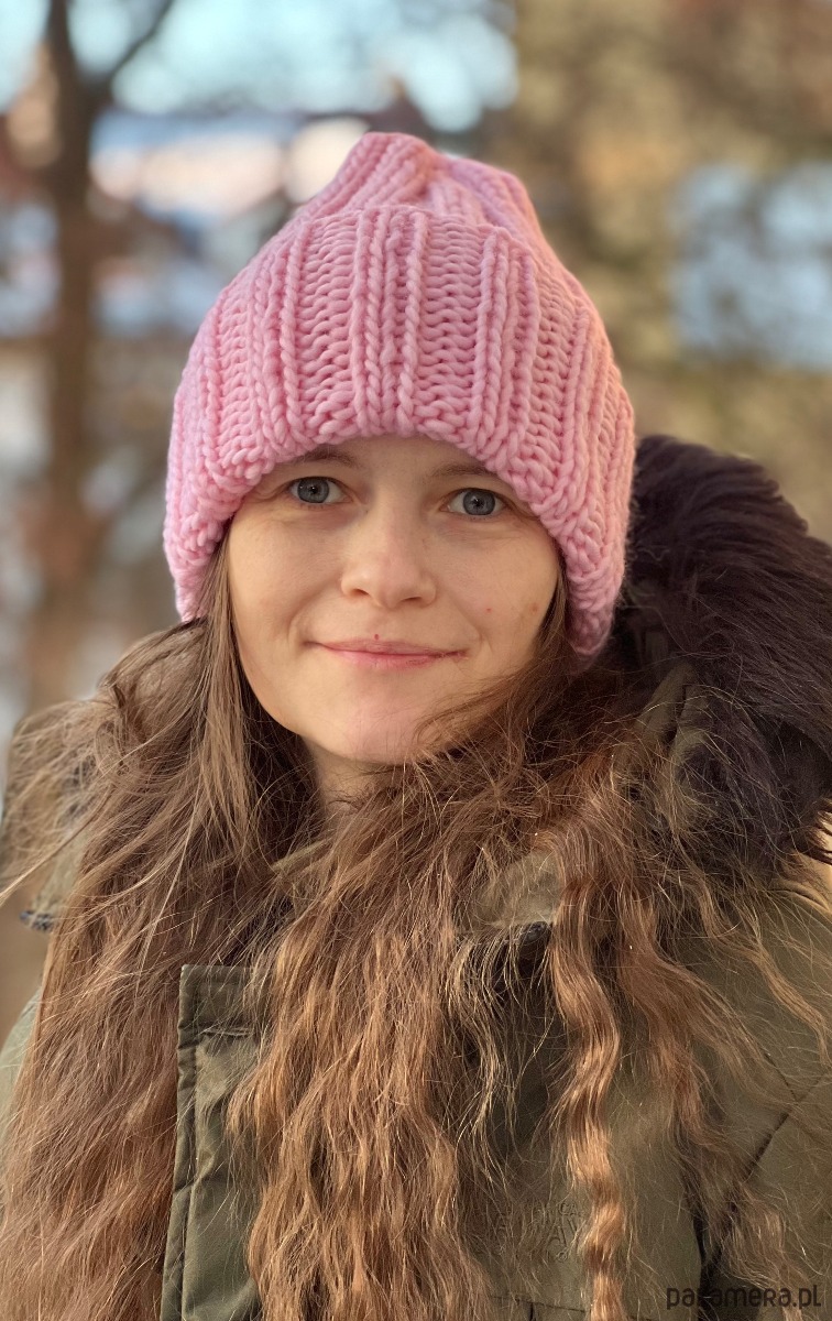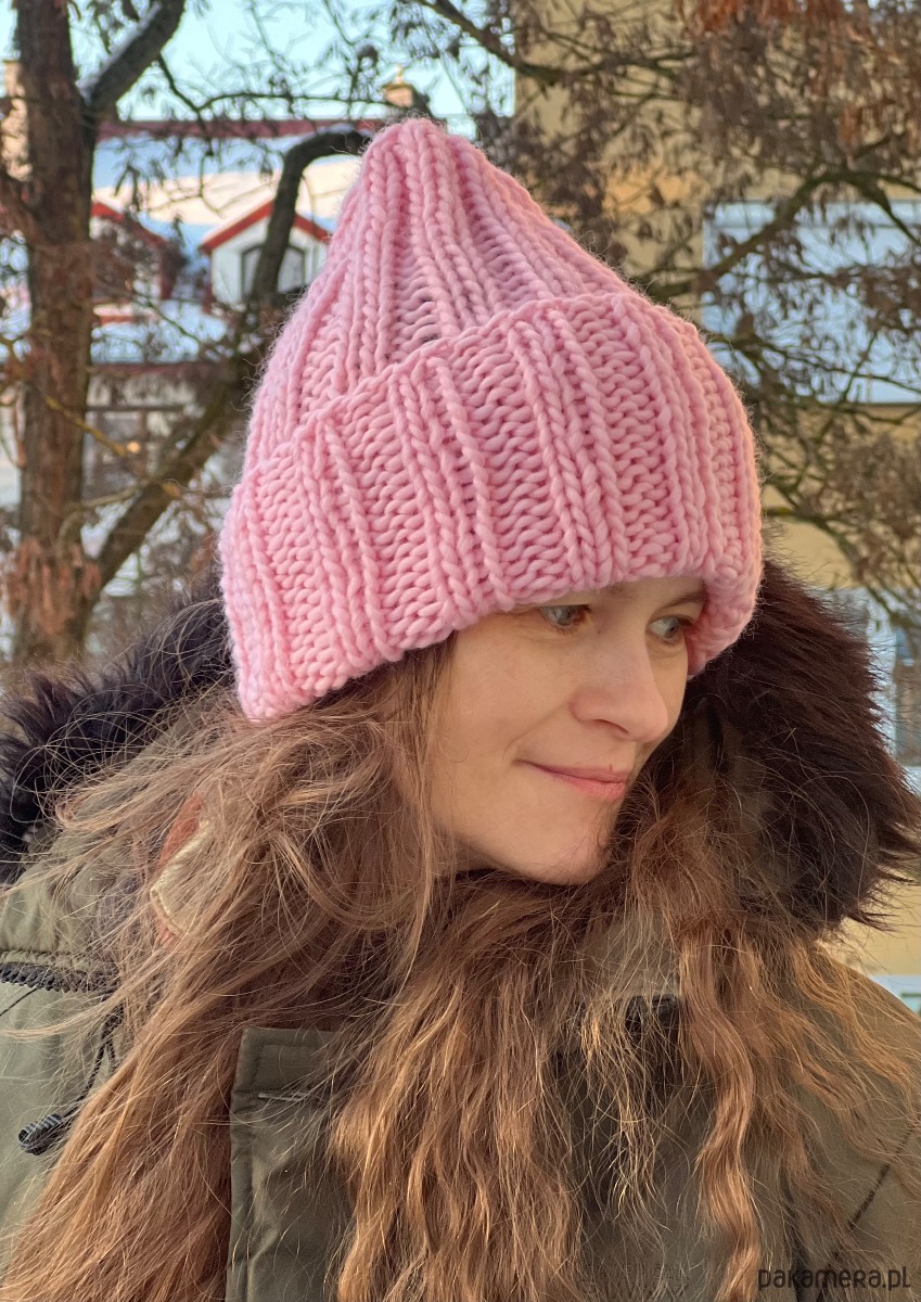 Zimowa czapka Buran 100% wełna z Peru blady róż