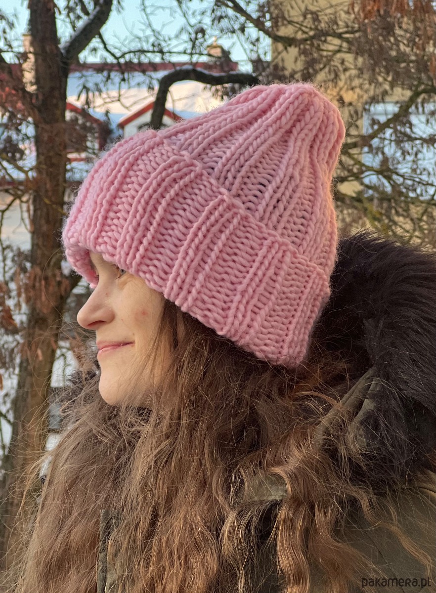 Rozmiar uniwersalny, czapka jest wykonana wzorem ściągaczowym i dopasowuje się idealnie do głowy. Długość ok. 37 cm