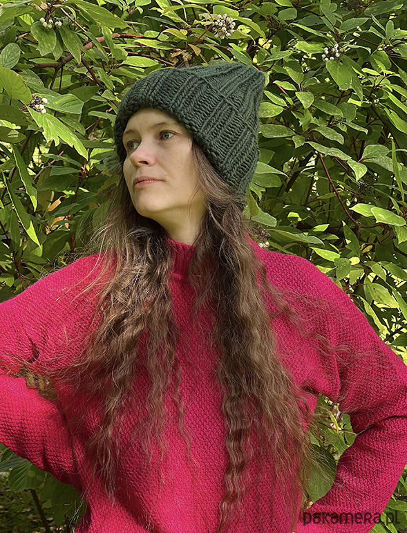 Wywijana czapka to idealne rozwiązanie na zimowe stylizacje. Gruba, ciepła zimowa czapka Buran została wykonana z włóczki 100% wełna pochodząca z Peru. Włókna są nieprzetworzone, co oznacza, że wełna została tylko uprana oraz, że przed farbowaniem nie została poddana obróbce chemicznej. Czapka jest długa, możesz nosić jako beanie, lub w wersji wywiniętej, wtedy podwójna warstwa wełny dogrzeje uszy.