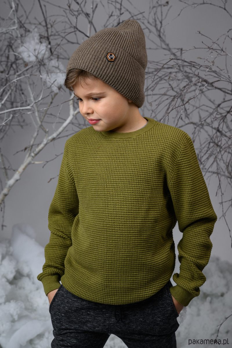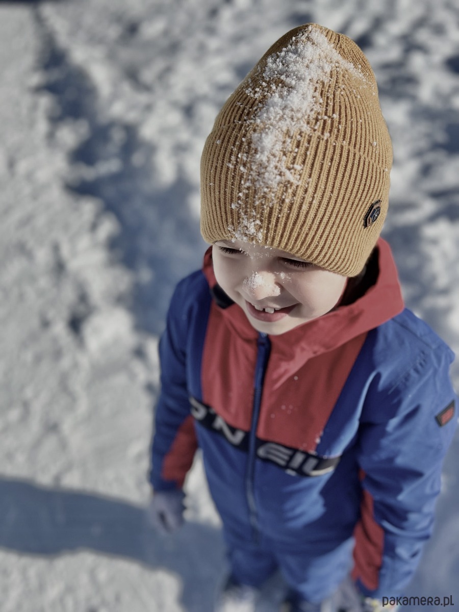 Czapka IKIN to doskonały wybór dla chłopca na chłodniejsze dni. Ozdobiona subtelną blaszką, łączy w sobie styl i funkcjonalność, idealnie komponując się z różnymi zimowymi stylizacjami.