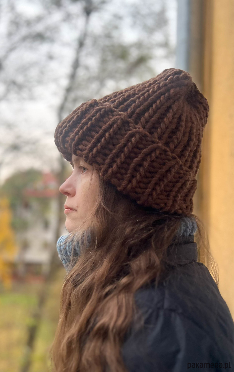 Czapka jest długa, możesz nosić jako beanie, lub w wersji wywiniętej, wtedy podwójna warstwa wełny dogrzeje uszy.