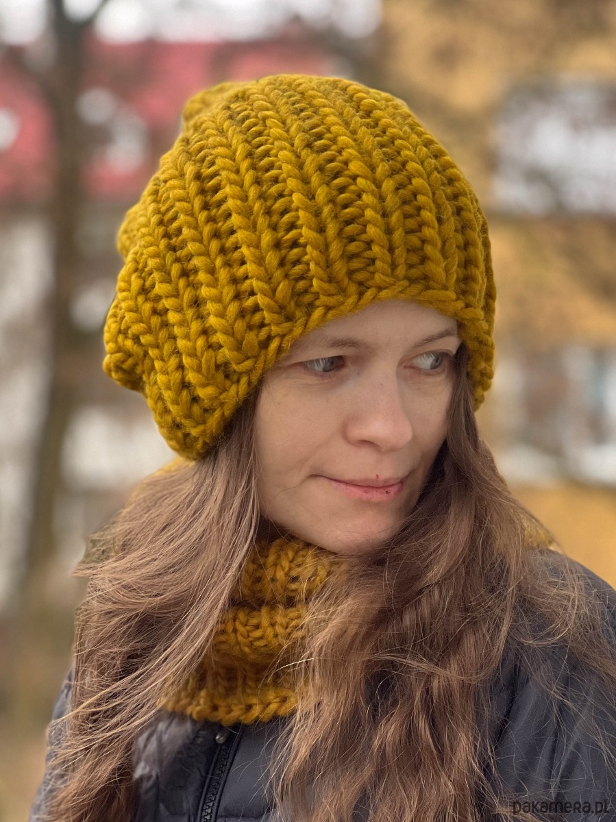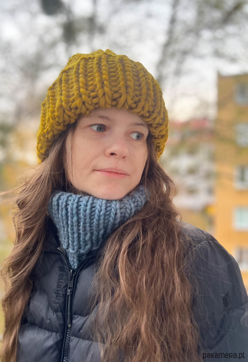 Bardzo gruba i ciepła wełniana zimowa czapka Lumi. Została wykonana z włóczki 85% Wełna (Virgin wool), 15% Alpaka.