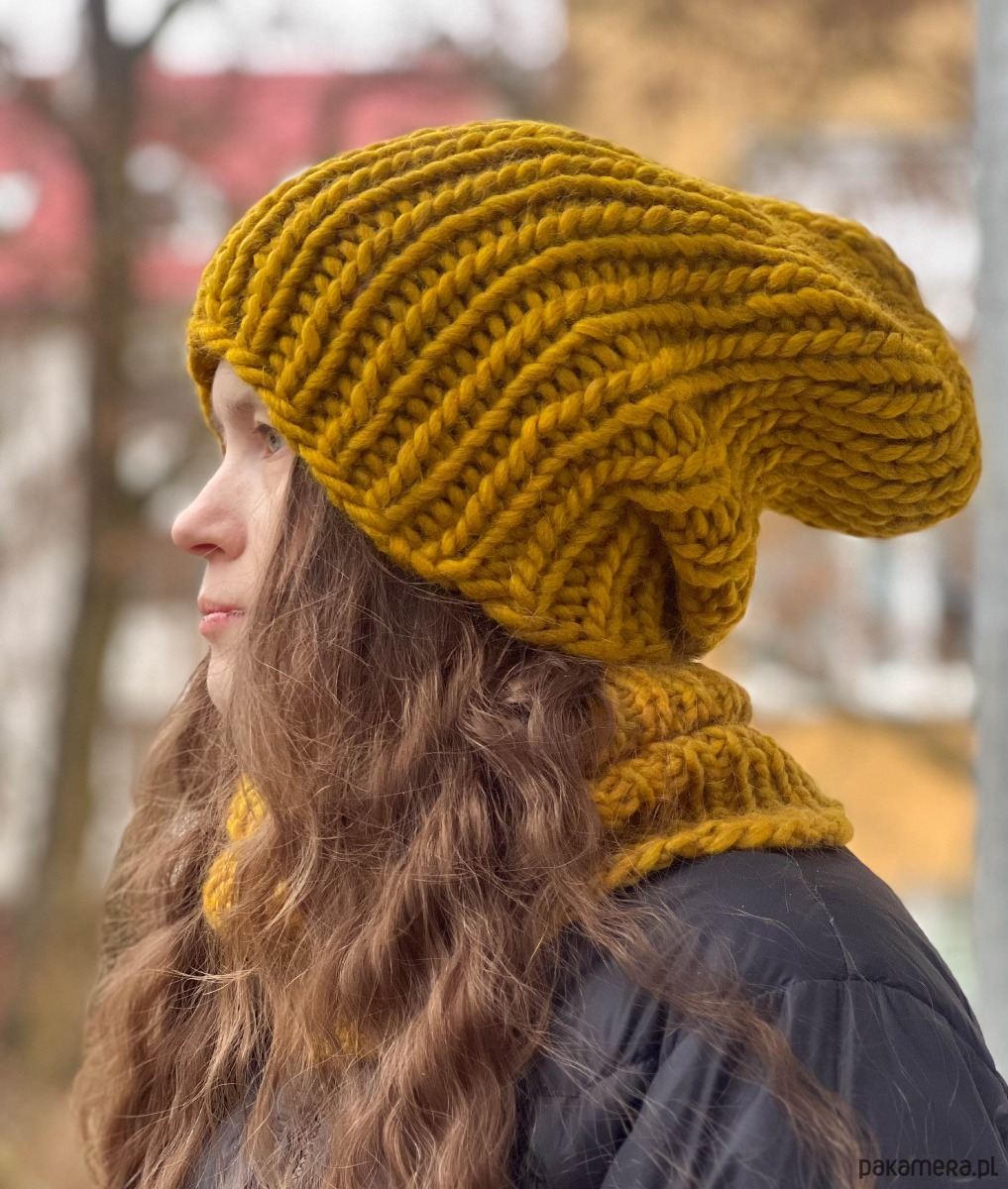 Czapka jest długa, możesz nosić jako beanie, lub w wersji wywiniętej, wtedy podwójna warstwa wełny dogrzeje uszy.