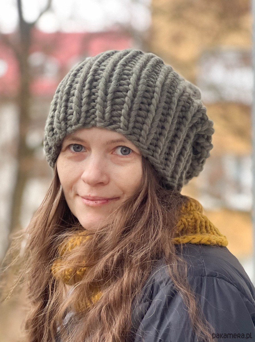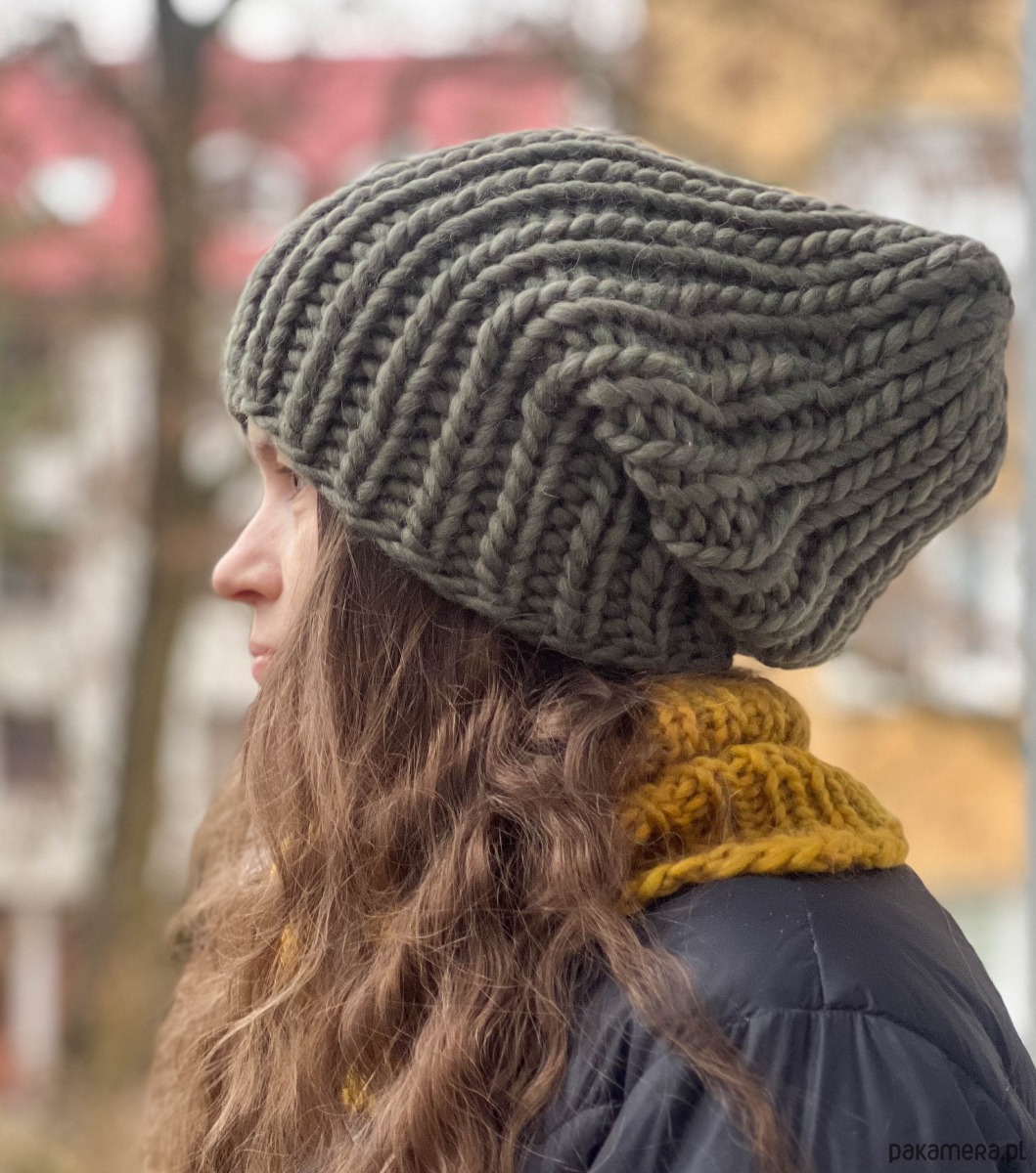 Czapka jest długa, możesz nosić jako beanie, lub w wersji wywiniętej, wtedy podwójna warstwa wełny dogrzeje uszy.