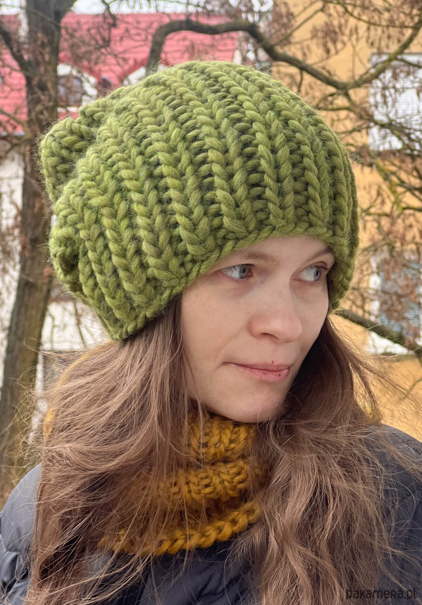 Bardzo gruba i ciepła wełniana zimowa czapka Lumi. Została wykonana z włóczki 85% Wełna (Virgin wool), 15% Alpaka.