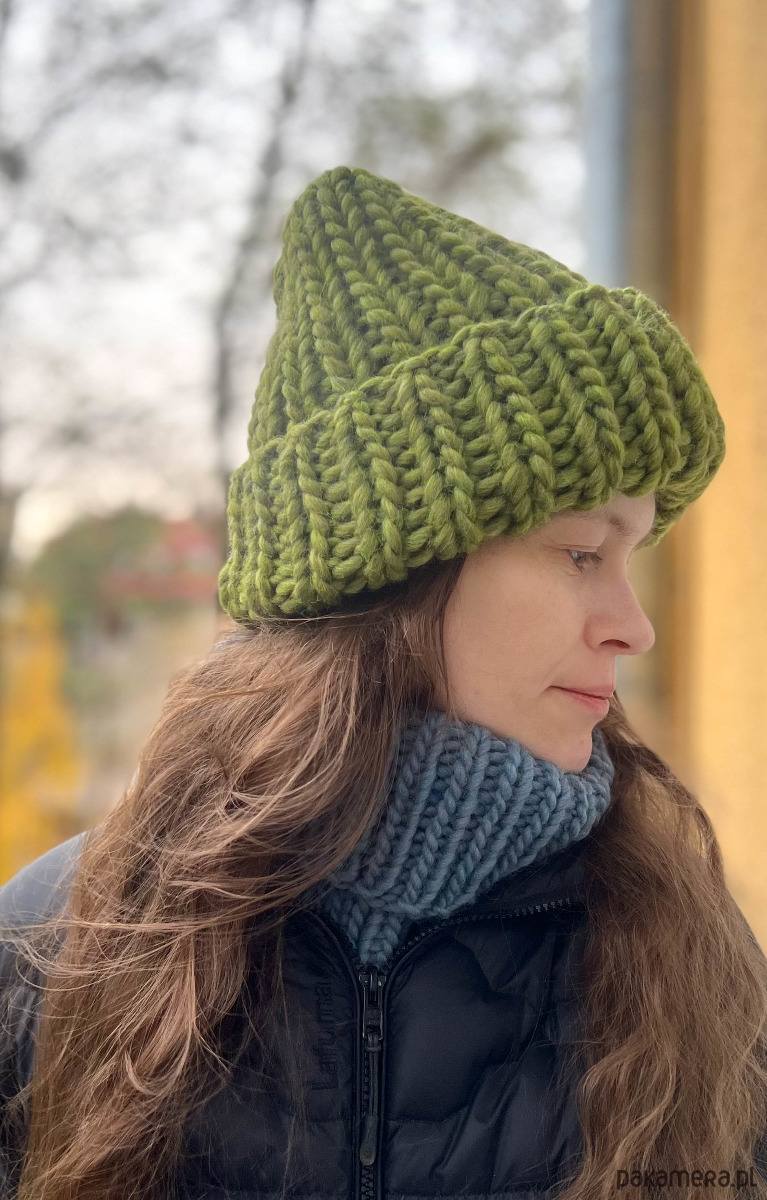 Czapka jest długa, możesz nosić jako beanie, lub w wersji wywiniętej, wtedy podwójna warstwa wełny dogrzeje uszy.