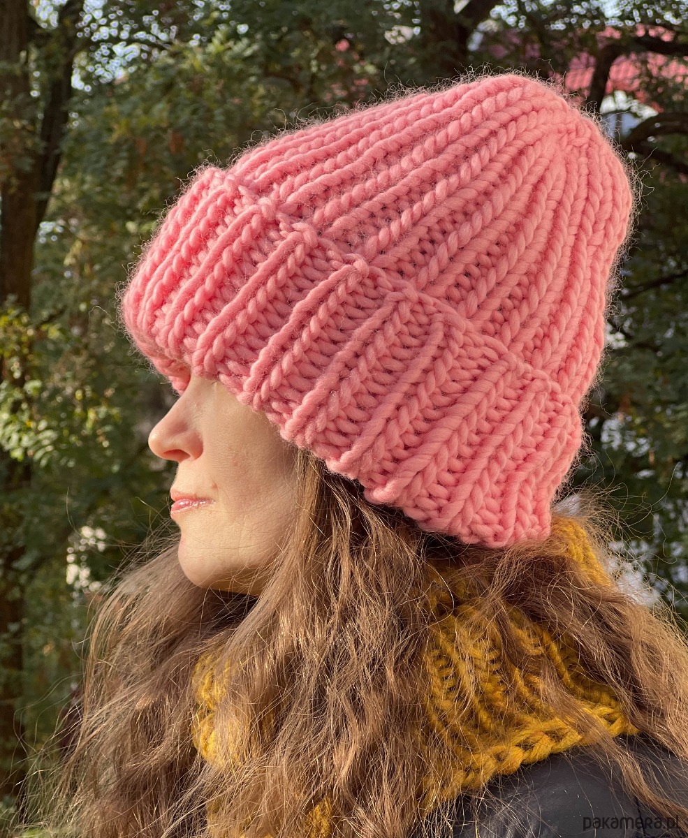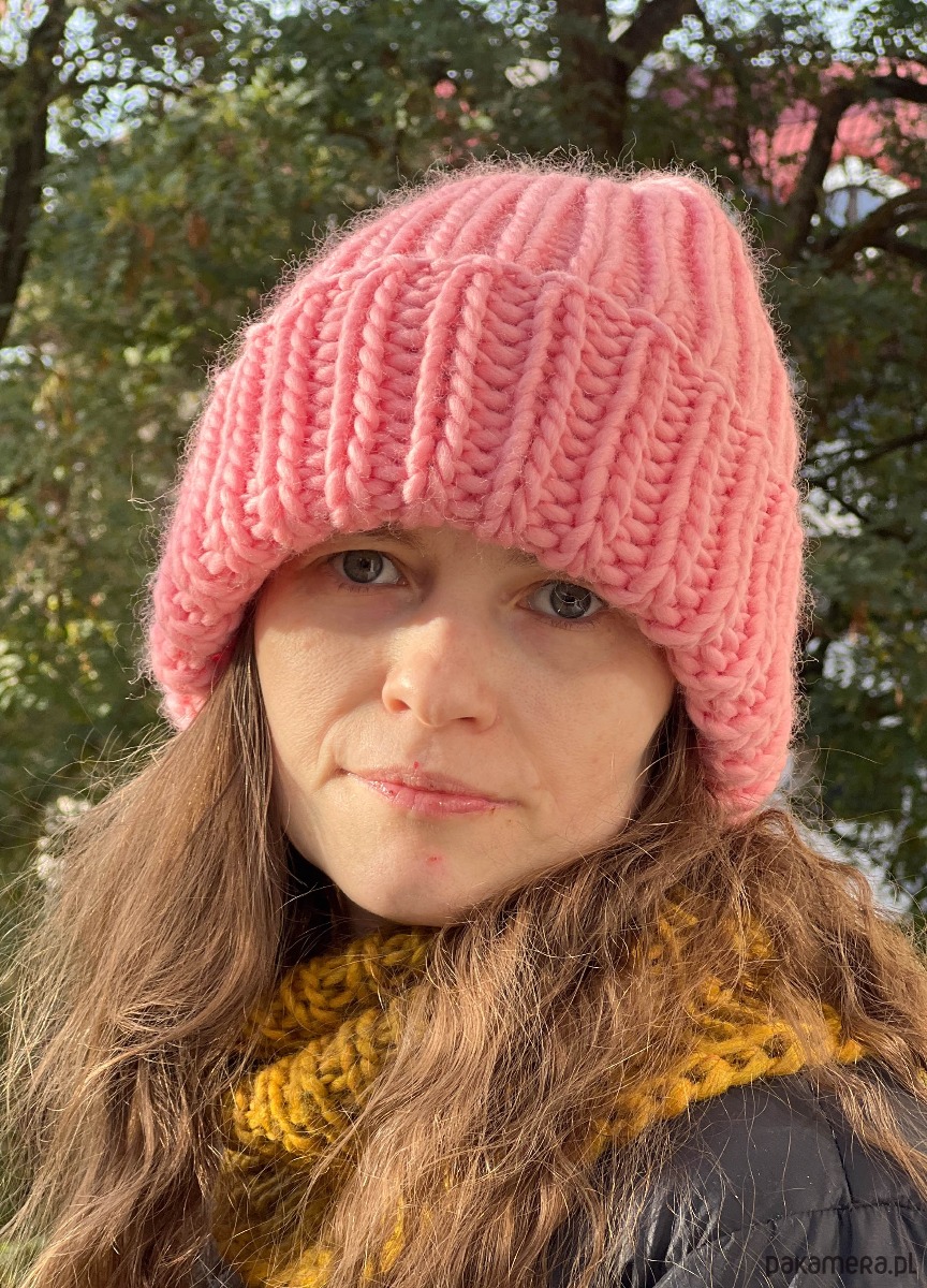 Rozmiar uniwersalny, czapka jest wykonana wzorem ściągaczowym i dopasowuje się idealnie do głowy. Długość ok. 34 cm