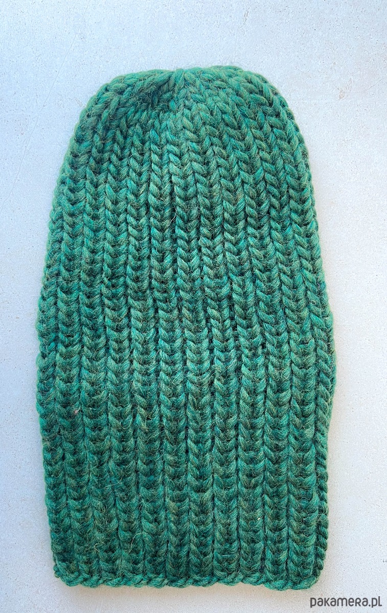 Rozmiar uniwersalny, czapka jest wykonana wzorem ściągaczowym i dopasowuje się idealnie do głowy. Długość ok. 34 cm
