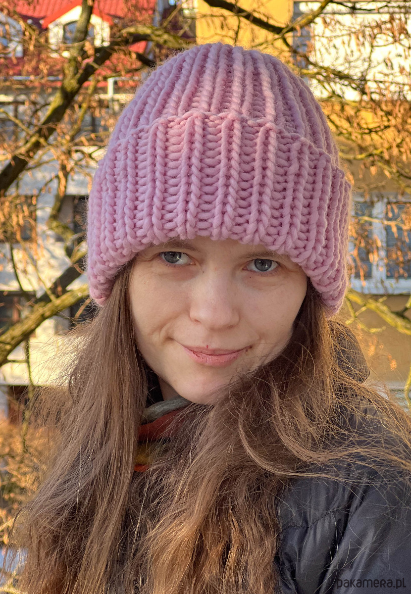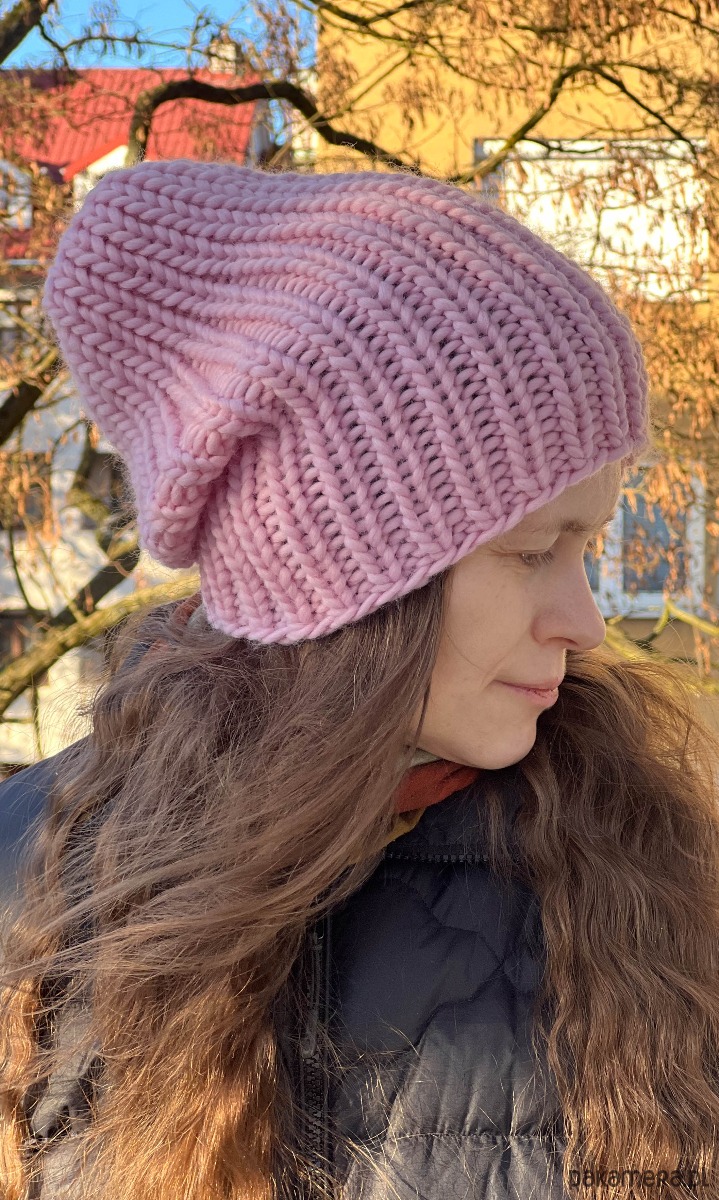 Rozmiar uniwersalny, czapka jest wykonana wzorem ściągaczowym i dopasowuje się idealnie do głowy. Długość ok. 34 cm